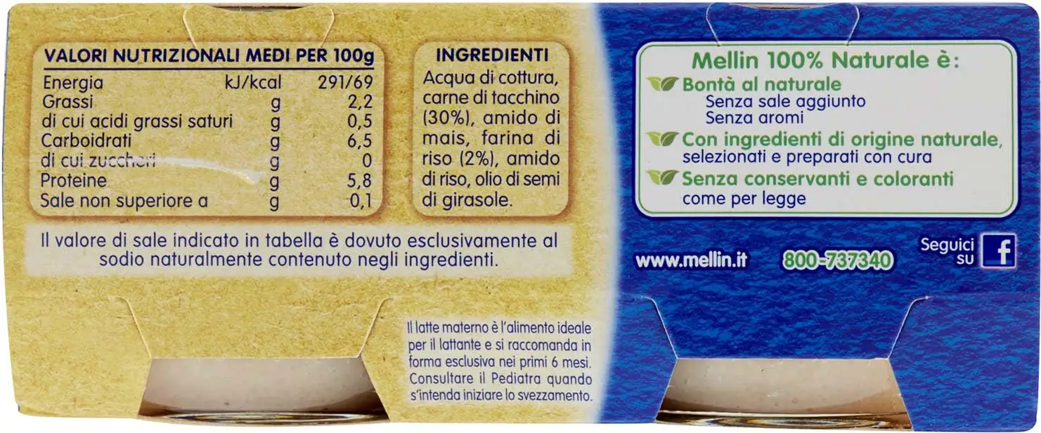 Mellin Baby food with rice flour and turkey 2 x 80 gr
