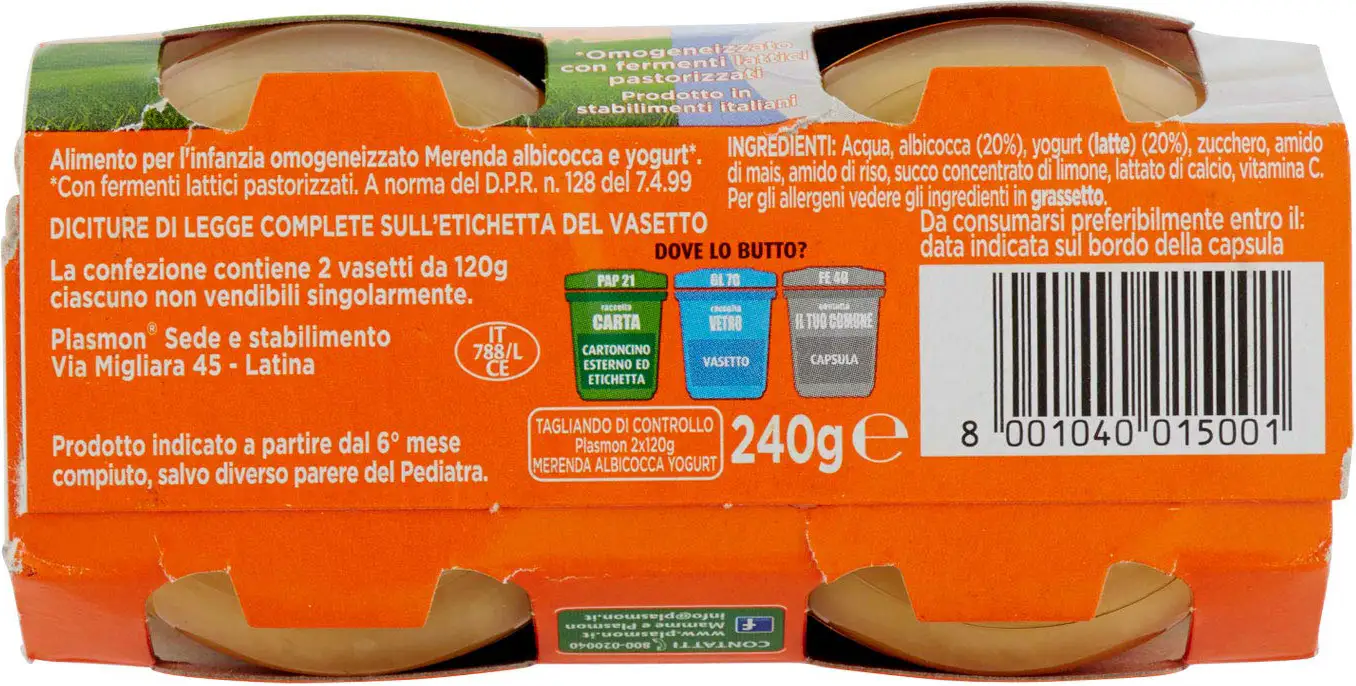Plasmon Yogurt and Apricot Snack can be consumed as a snack or between meals.