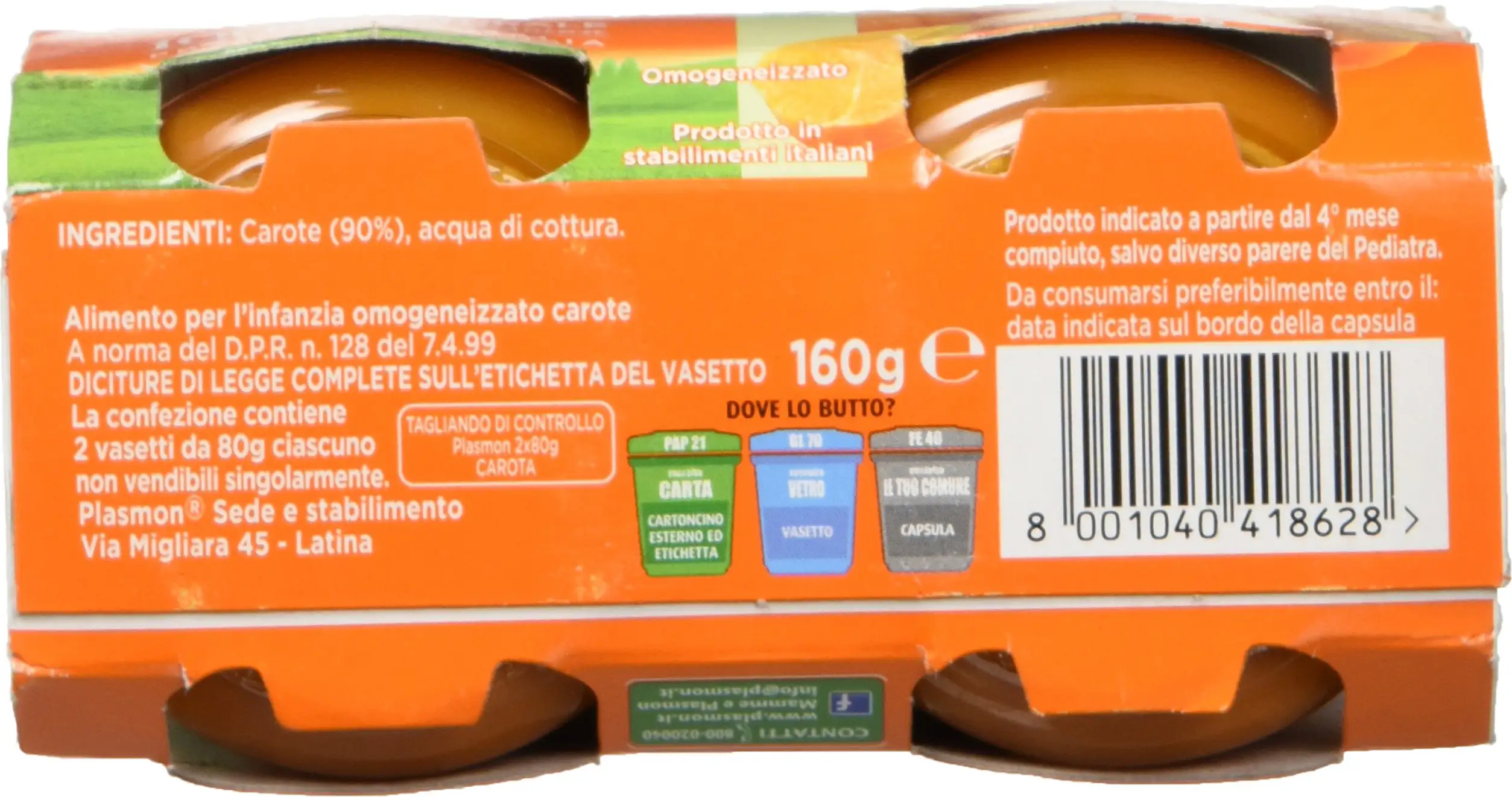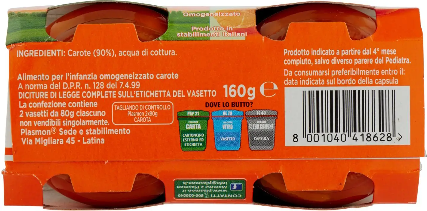 Plasmon Carrot Homogenized Food 2 x 80 g