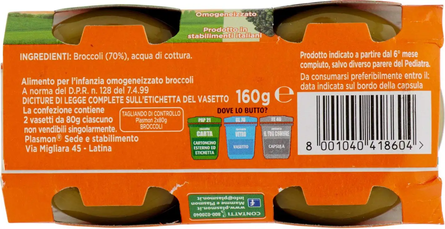 Plasmon Broccoli Homogenized Food 2 x 80 g
