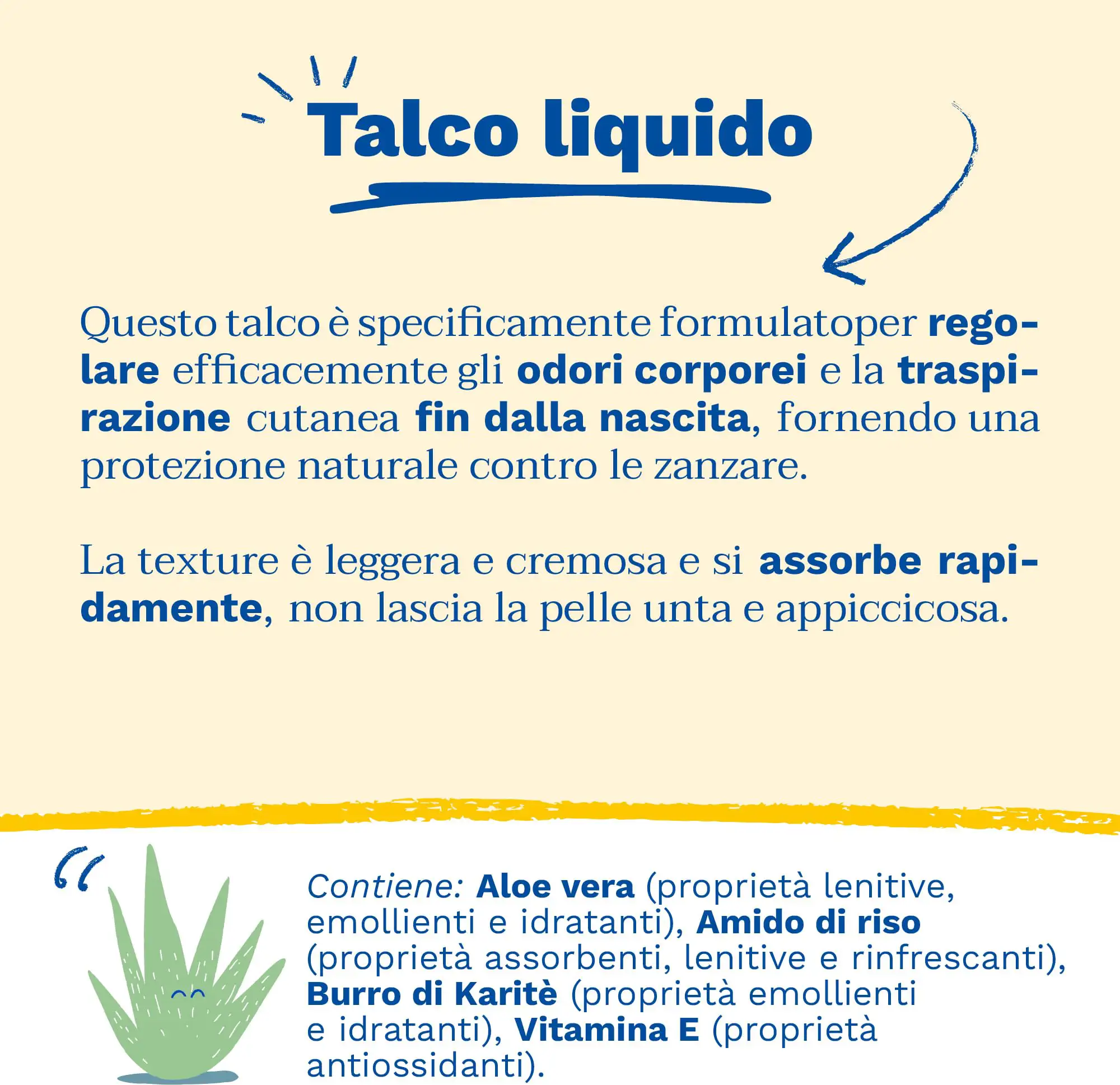 BabyZzz Talc Non-Talc is a light and creamy soothing cream, effectively regulates body odor, skin perspiration and refreshes while providing natural protection against mosquitoes. It is suitable for all skin types, from birth and reduces sweating and produces a fragrance unpleasant to mosquitoes, protecting the littlest ones. small. The texture is light and creamy and absorbs quickly, does not leave the skin greasy and sticky.