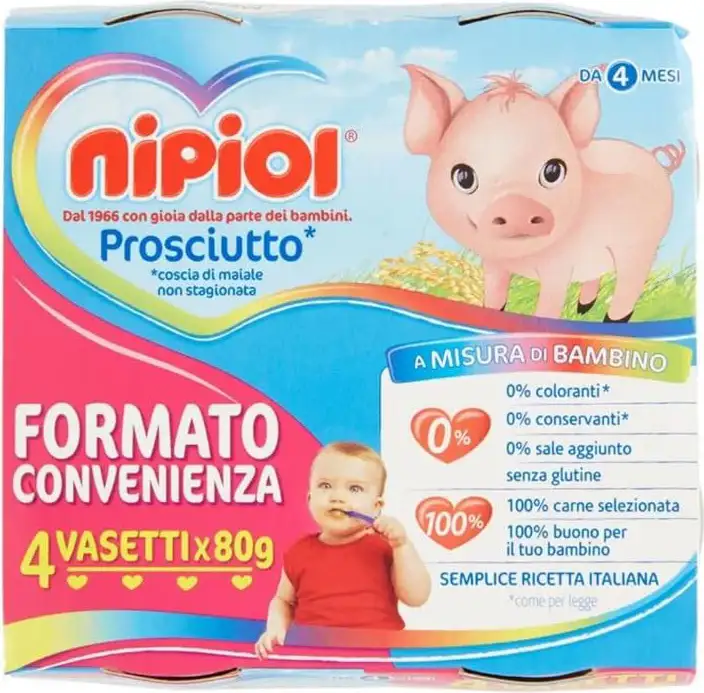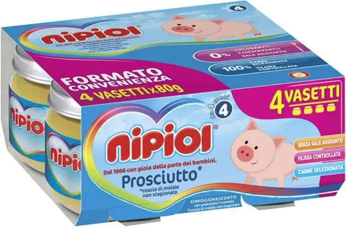 Like all Nipiol products, the ham puree is also based on simple Italian recipes for a tasty and nutritious meal.