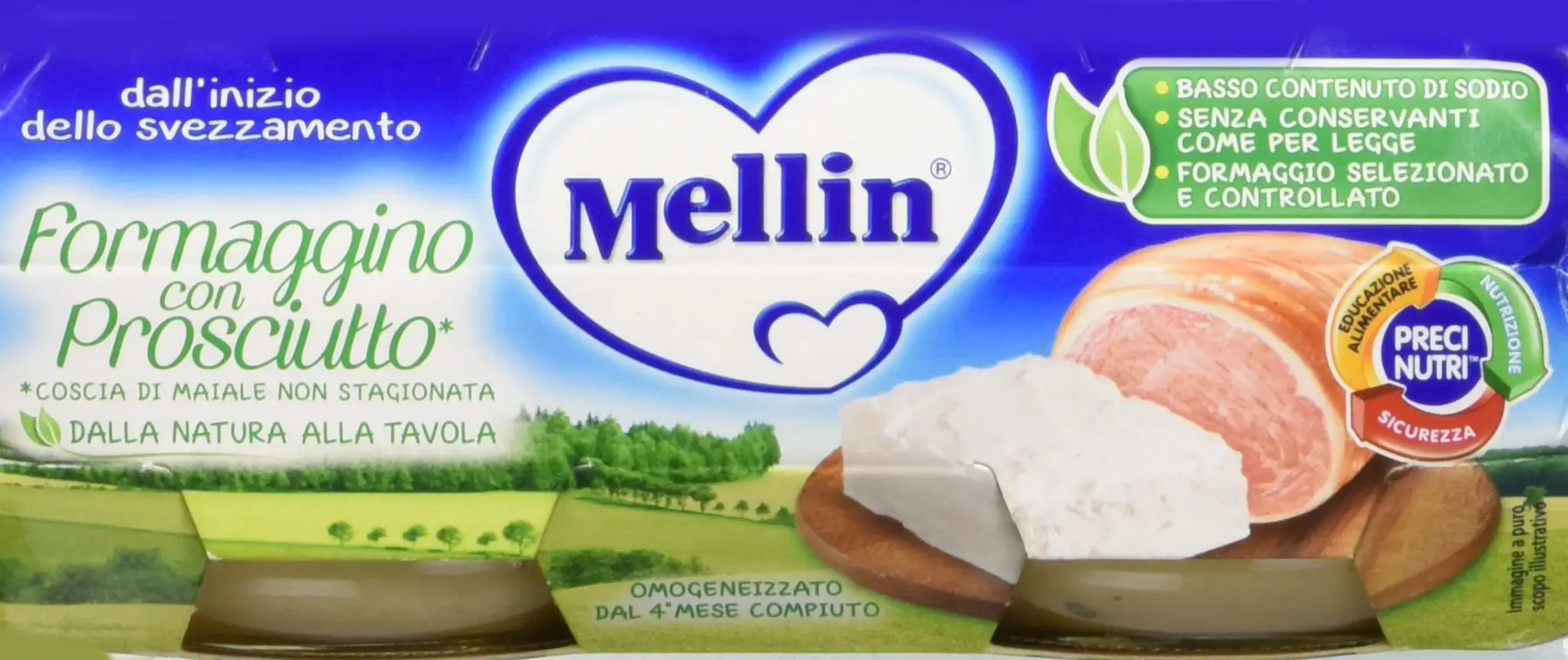 Mellin Homogenized cheese and ham 2x80g