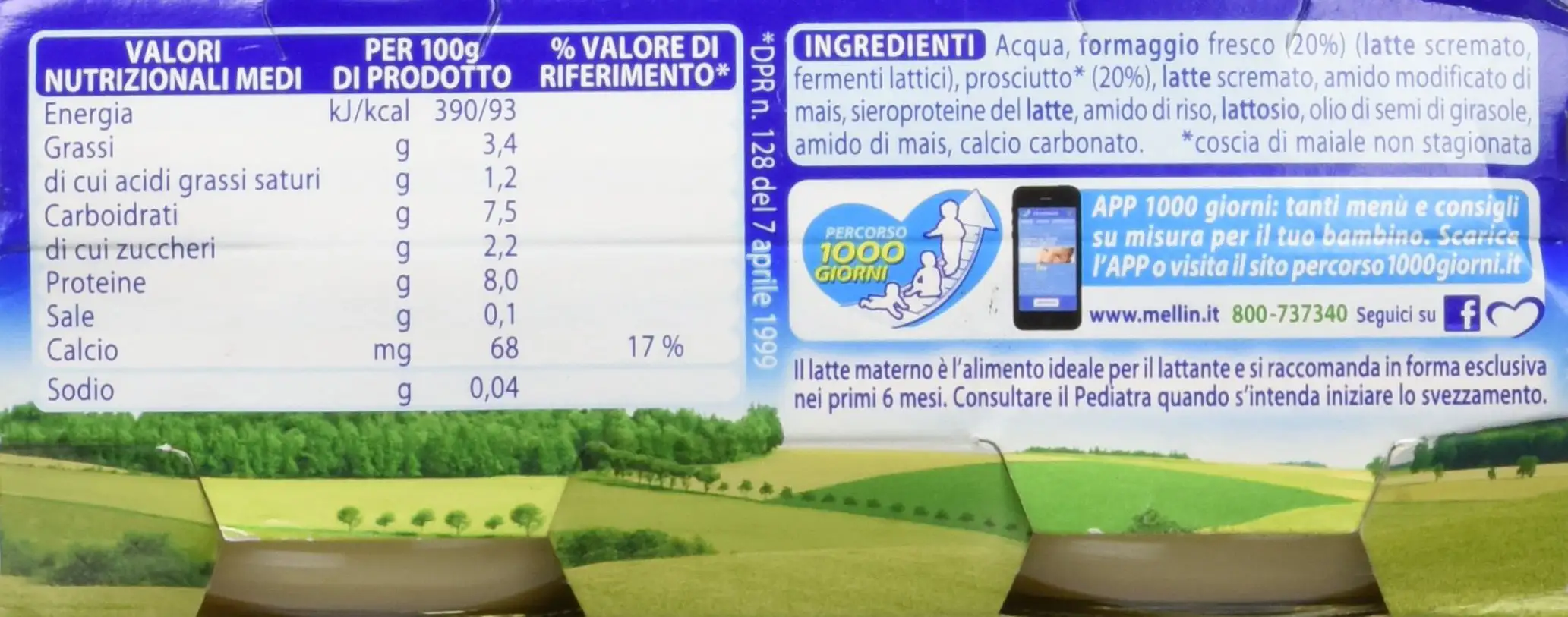 Mellin Cheese and Ham purees for infants, which are the child's first experience with the taste of cheese. The Prenutri™ program Mellin's baby food is specially formulated to meet the nutritional needs of children at every stage of their growth.