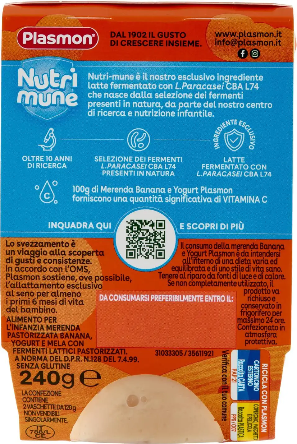 Homogenized based on banana and yogurt. With pasteurized lactic ferments. Source of calcium and vitamin C. Ideal from your baby's 6th month.