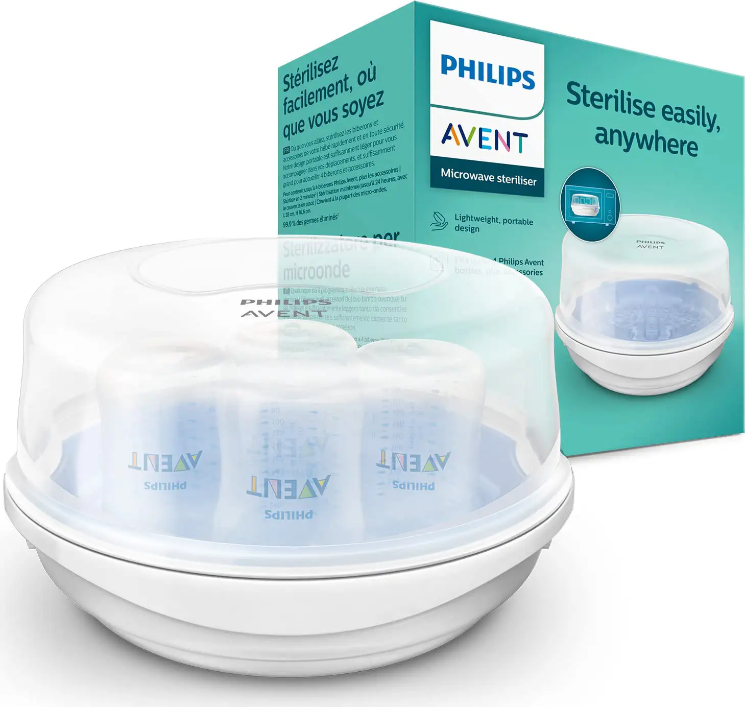 Despite its small size, it is the only microwave sterilizer designed to sterilize 6 Philips AVENT bottles.