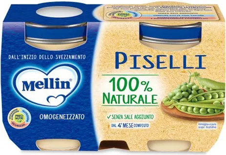 Mellin Pea puree. Vegetables are important and are recommended from the beginning of weaning. Together with fruit, a daily consumption of 4-5 portions is recommended, often alternating the varieties, after consulting your pediatrician.