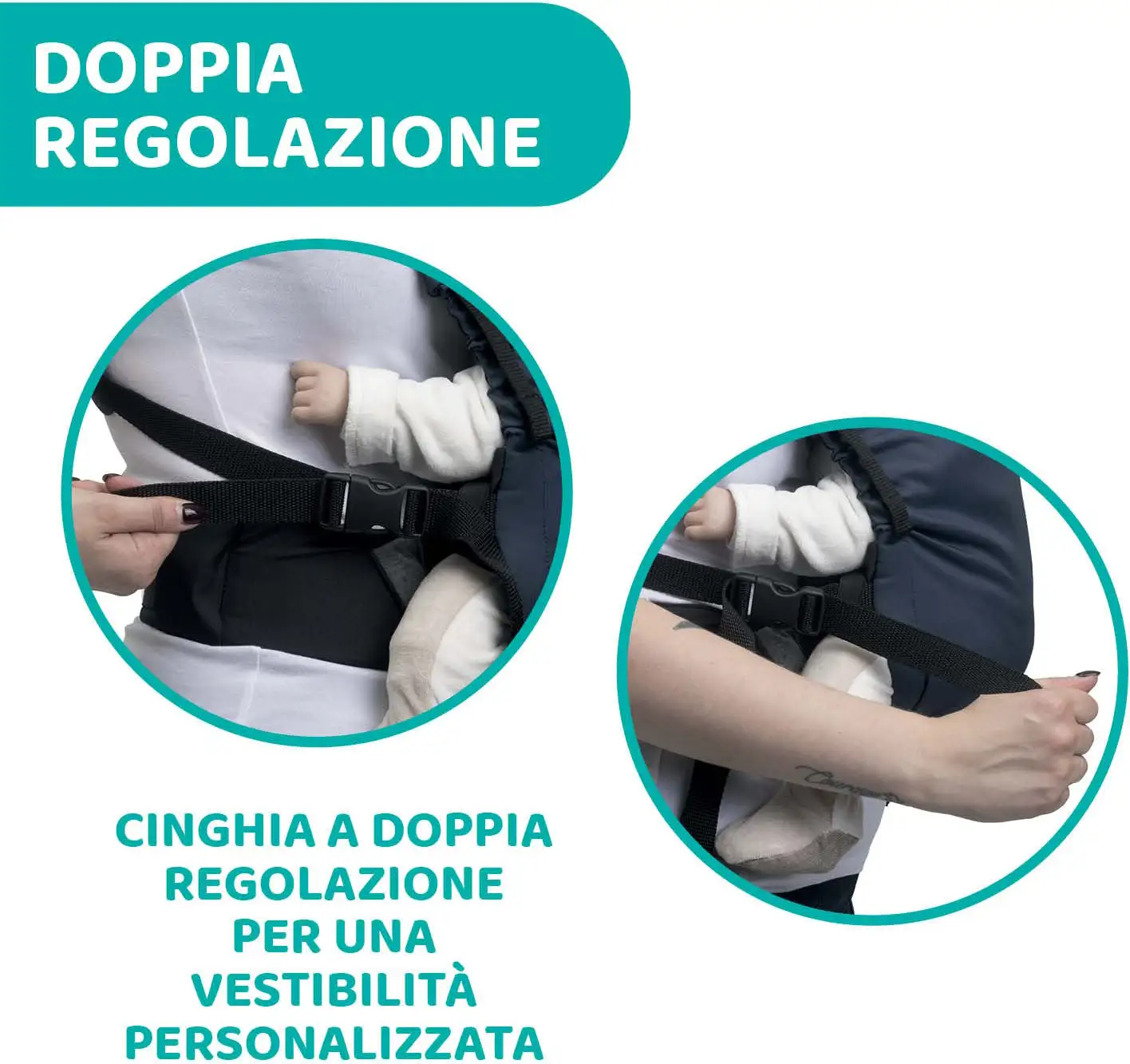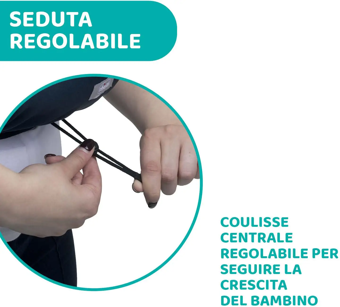 - Respects ergonomics: Thanks to the central drawstring, you can easily adjust the width of the seat to ensure the correct “M” position; of the baby's legs, essential for the correct ergonomics and posture of the child;