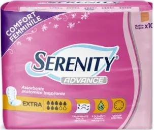 Serenity Advance Extra Sanitary Pads have an anatomical shape that adapts to the shape of the body to ensure maximum comfort during movement.