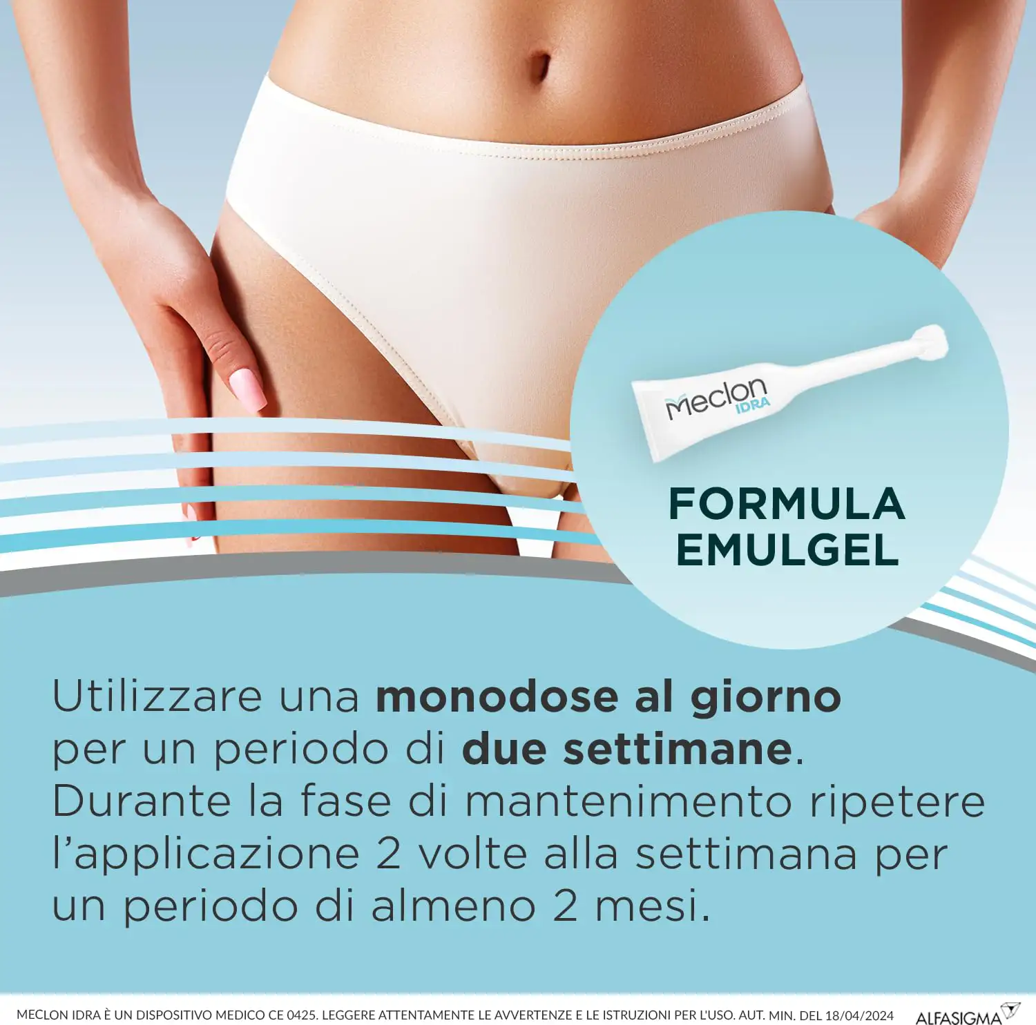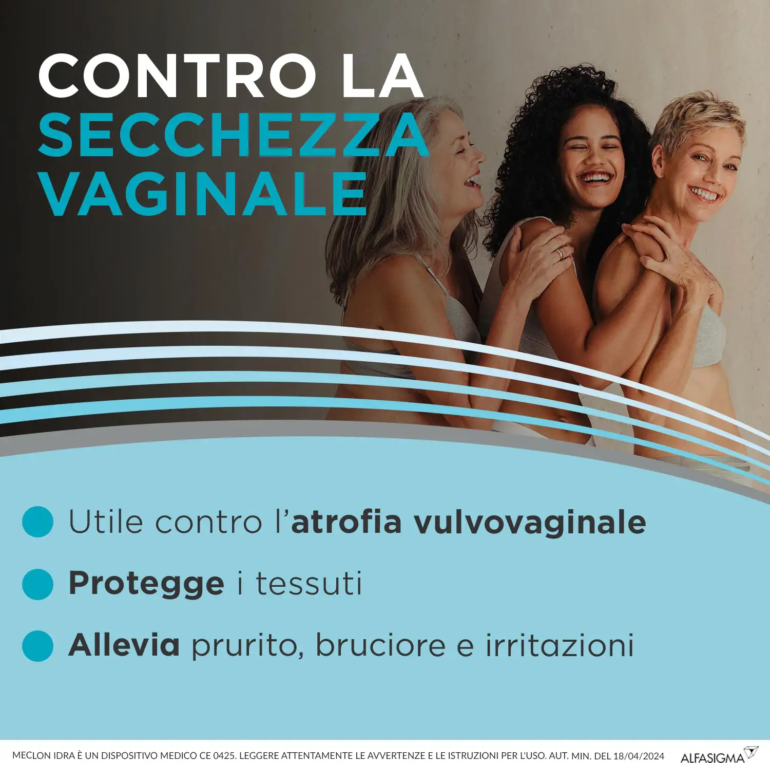 The use of Meclon Idra is recommended for vaginal atrophy and dryness of various origins (menopause, medications, hormonal imbalances, stress).