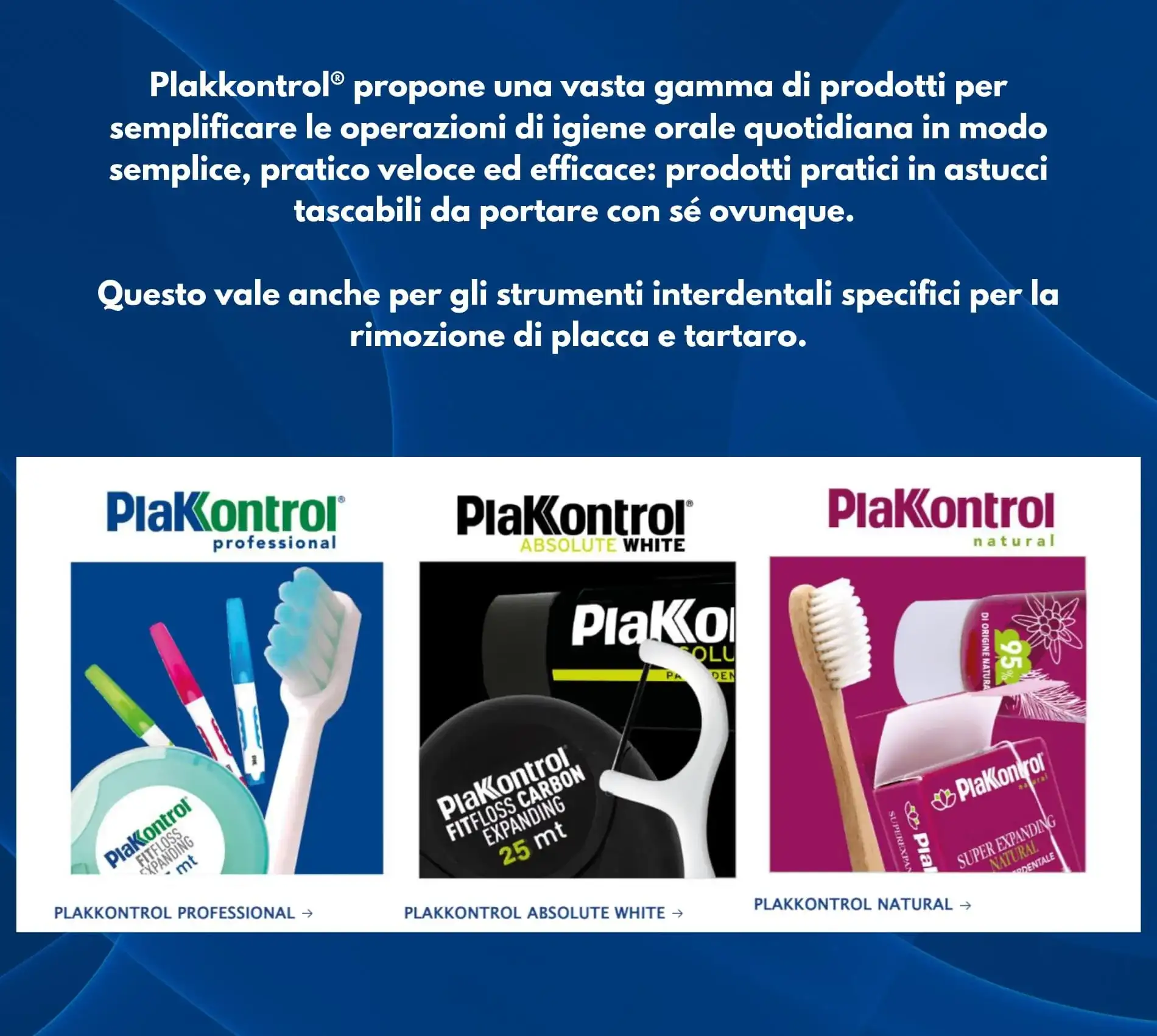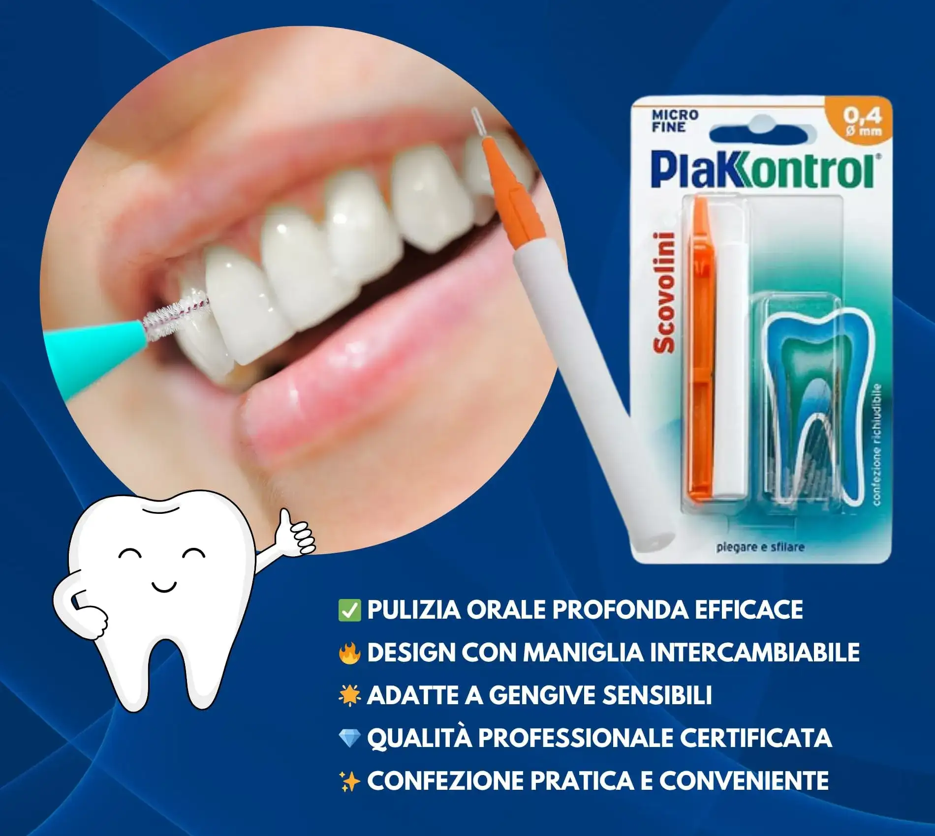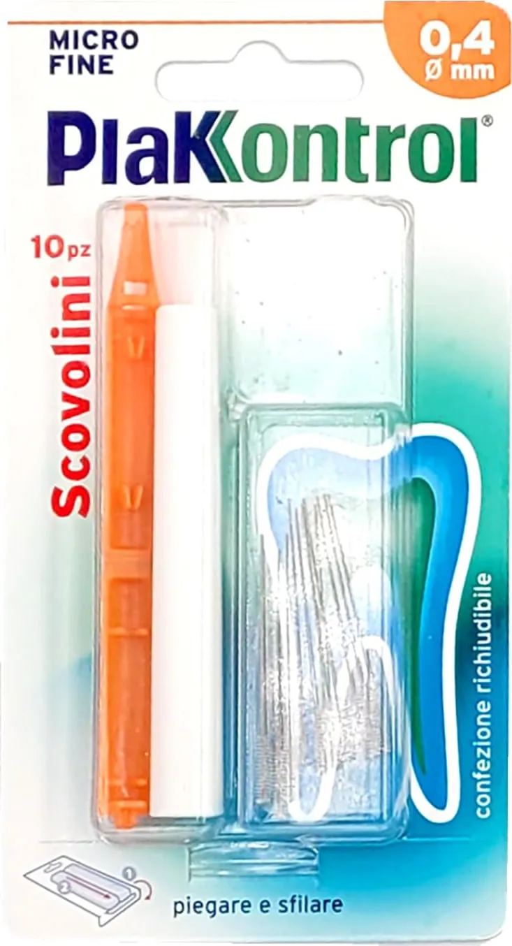 Plakkontrol Interdental Brushes with Interchangeable Handles Plakkontrol interdental brushes are recommended for preventing tooth and gum problems by removing plaque from hard-to-reach surfaces, particularly: • from interdental spaces • near crowns • under bridges • around endosseous implants • under orthodontic wires. Developed from research at the University of Gothenburg, Plakkontrol interdental brushes are manufactured to the highest quality standards to ensure thorough plaque removal in complete safety. Plakkontrol interdental brushes offer a wide range of sizes with 8 alternatives—from 0.4mm to 1.5mm—to specifically adapt to everyone's needs. Coated metal core: All Plakkontrol interdental brushes feature a central metal core coated with a thin plastic sheath to prevent gum injury, enamel damage, and galvanic sensitization, which can occur when two different metals come into contact. This makes them 100% safe, even for those with implants and orthodontic appliances. Technologically innovative: DuPont Nylon bristles of varying thickness and length are inserted into the metal core using a special process that prevents fraying, ensuring a longer lifespan. Regularly changing both the handle and cap is a fundamental hygiene practice to prevent excessive bacterial growth and contamination. PACK OF 10 PCS.