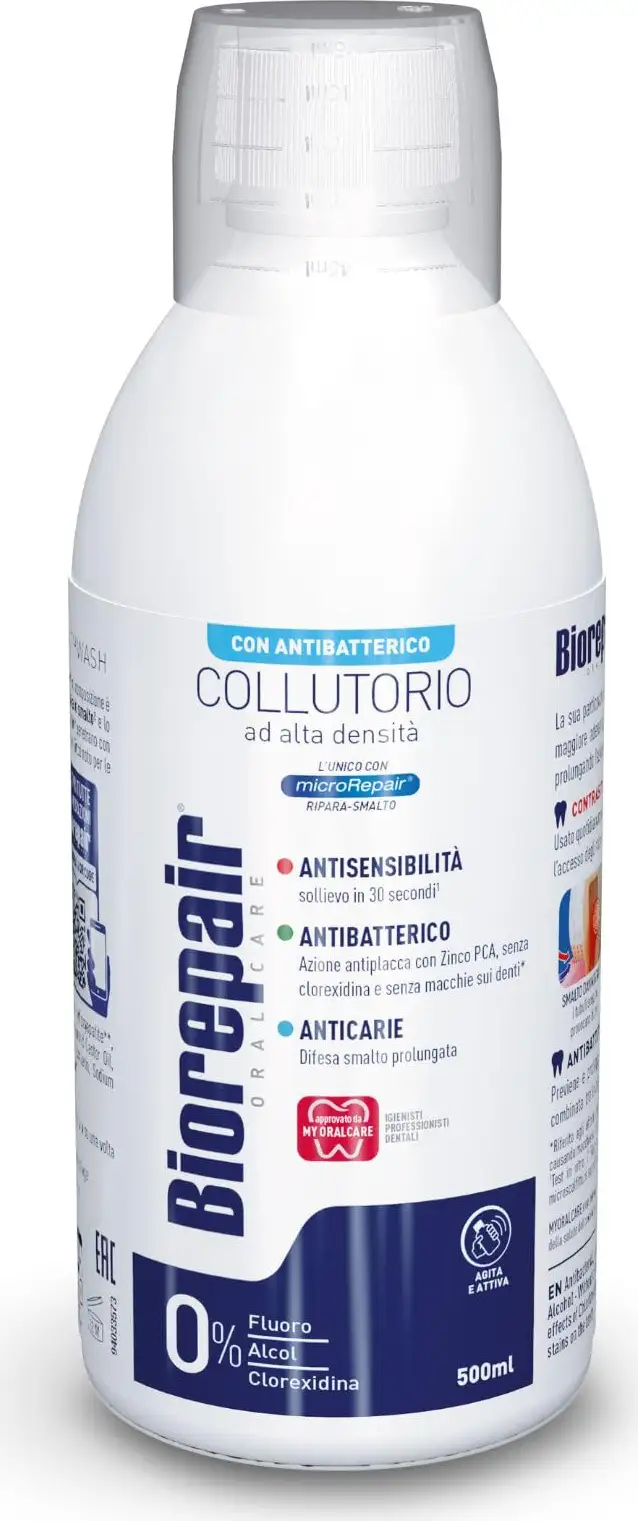 Oral Care Mouthwash - the only one with Microrepair - Repairs and protects enamel - Prevents and protects against plaque, tartar and cavities - Counteracts dentinal hypersensitivity - protects the gums - Alcohol-free and Chlorhexidine-free - Colorant-free - 500 ml bottle.