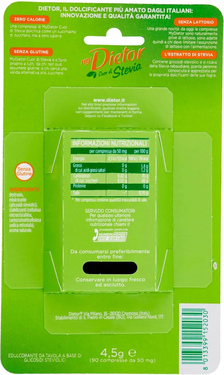 Dietor Low calorie sweetener with leaf extract stevia natural heart 90 tablets