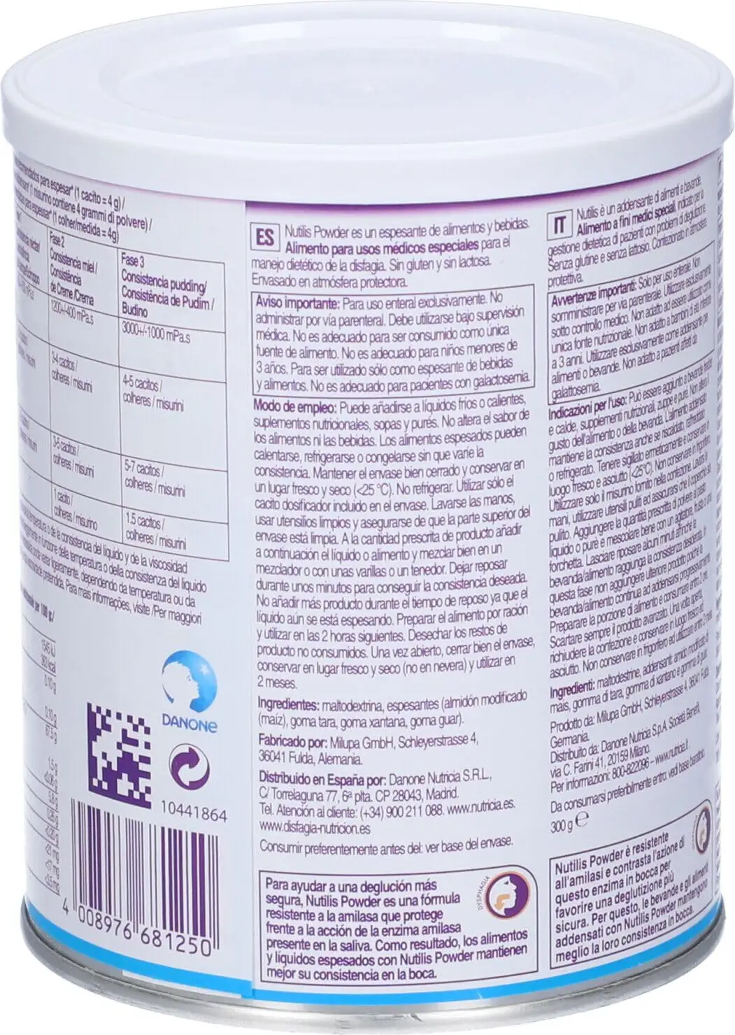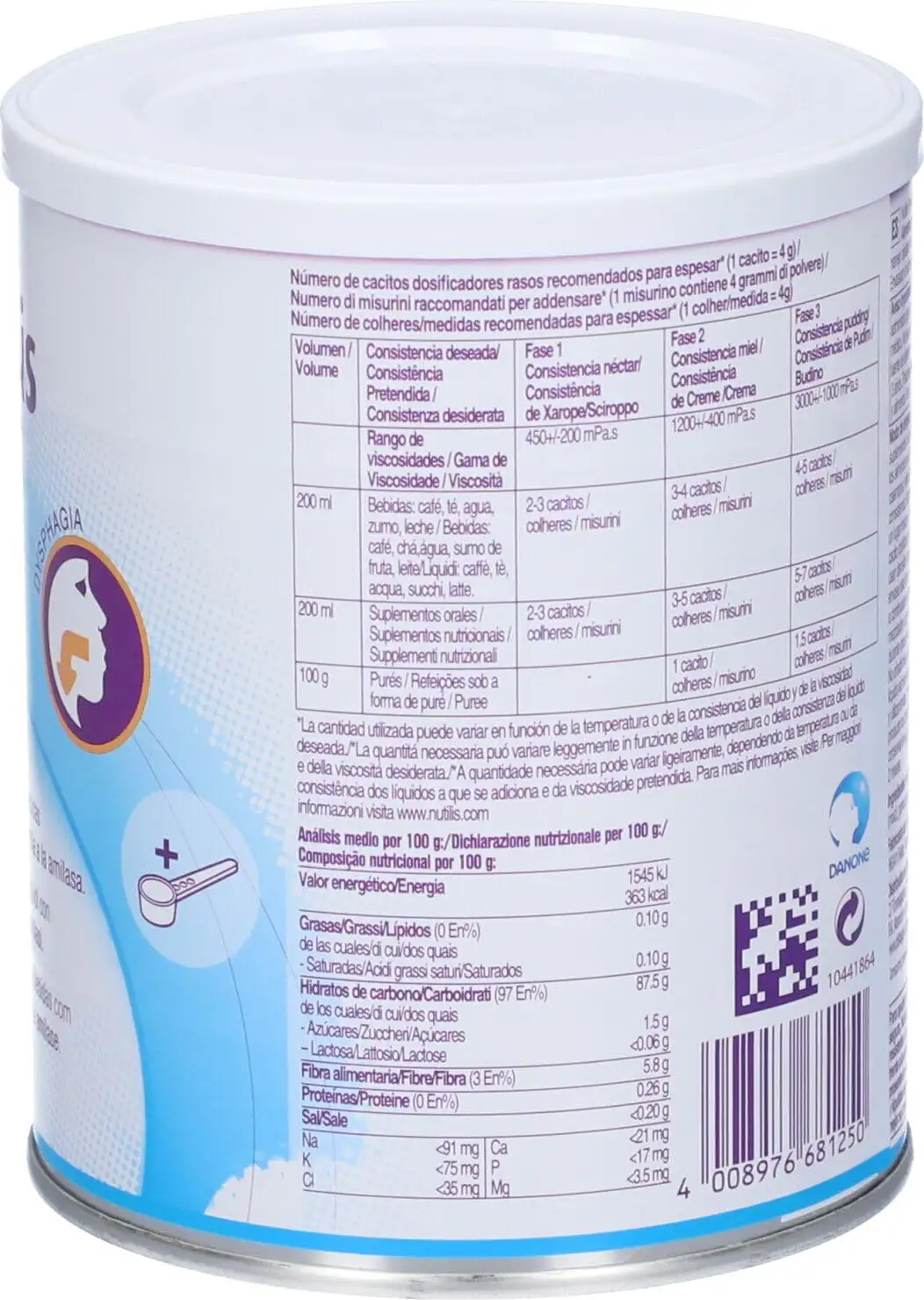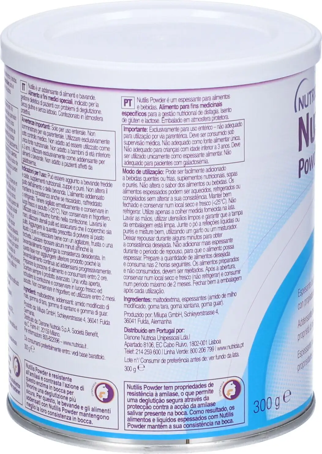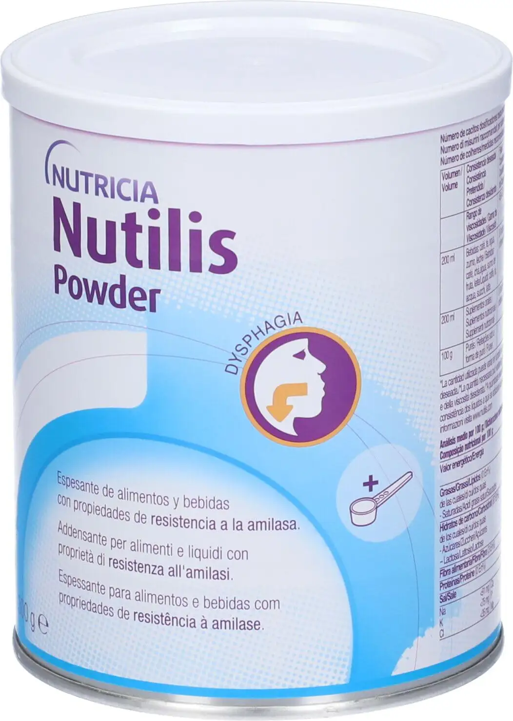 Nutilis Powder is a thickening powder based on modified starch, with a patented amylase-resistant formula. Dietary food intended for special medical purposes, indicated for patients with swallowing problems (dysphagia). To be used as a thickener for liquids, semi-liquids, or blended meals. Nutilis Powder has a revolutionary blend that does not change consistency, allowing for safe swallowing. Nutilis Powder is flavorless so it does not alter the taste of the food to which it is added. Gluten-free.