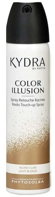 Natural-effect hair touch-up spray, light blonde color.