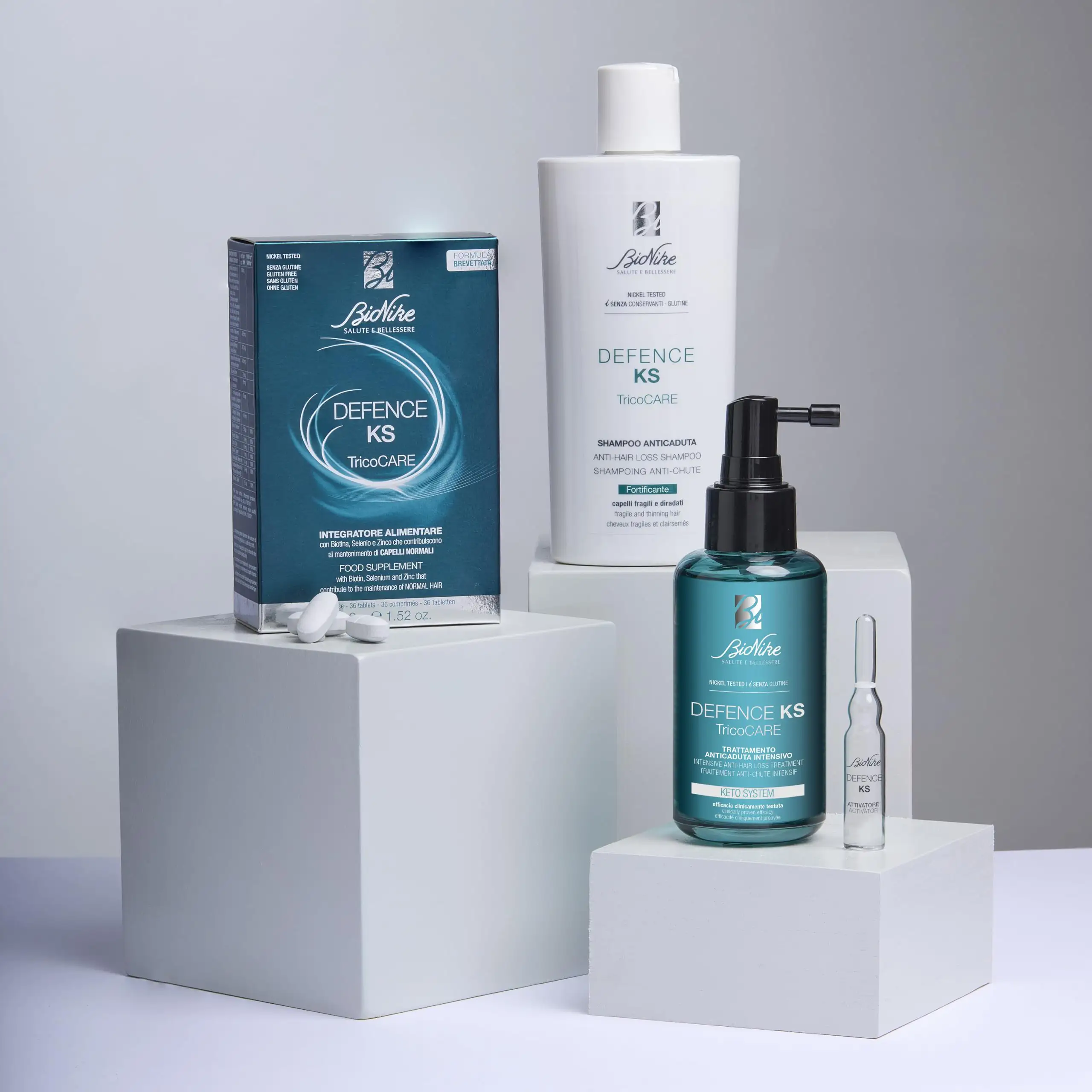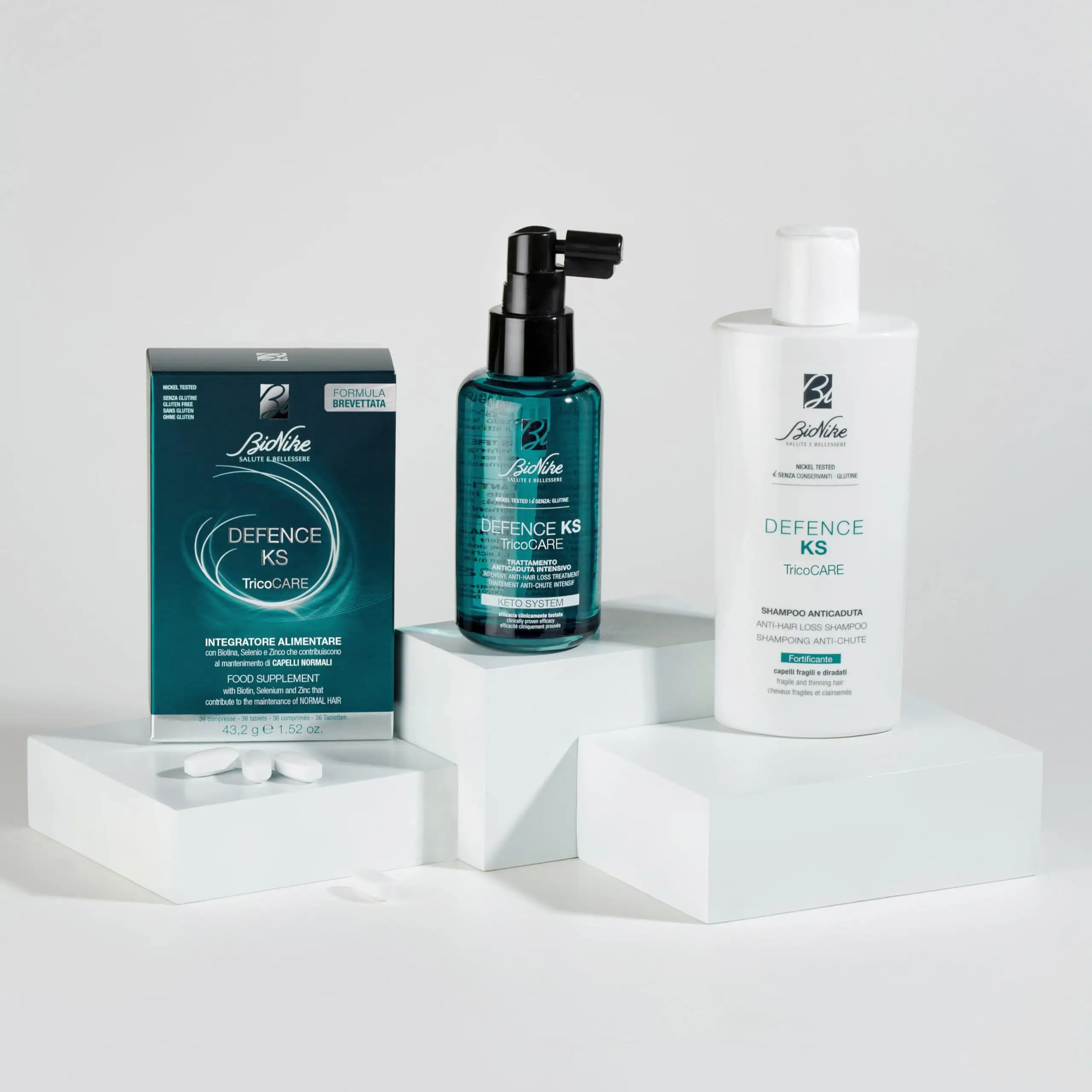 Defence KS Tricosafe gently cleanses and promotes optimal conditions for stronger, more vital hair. It is the ideal complement to restore the balance of the scalp, preparing it to receive the topical anti-hair loss treatment.