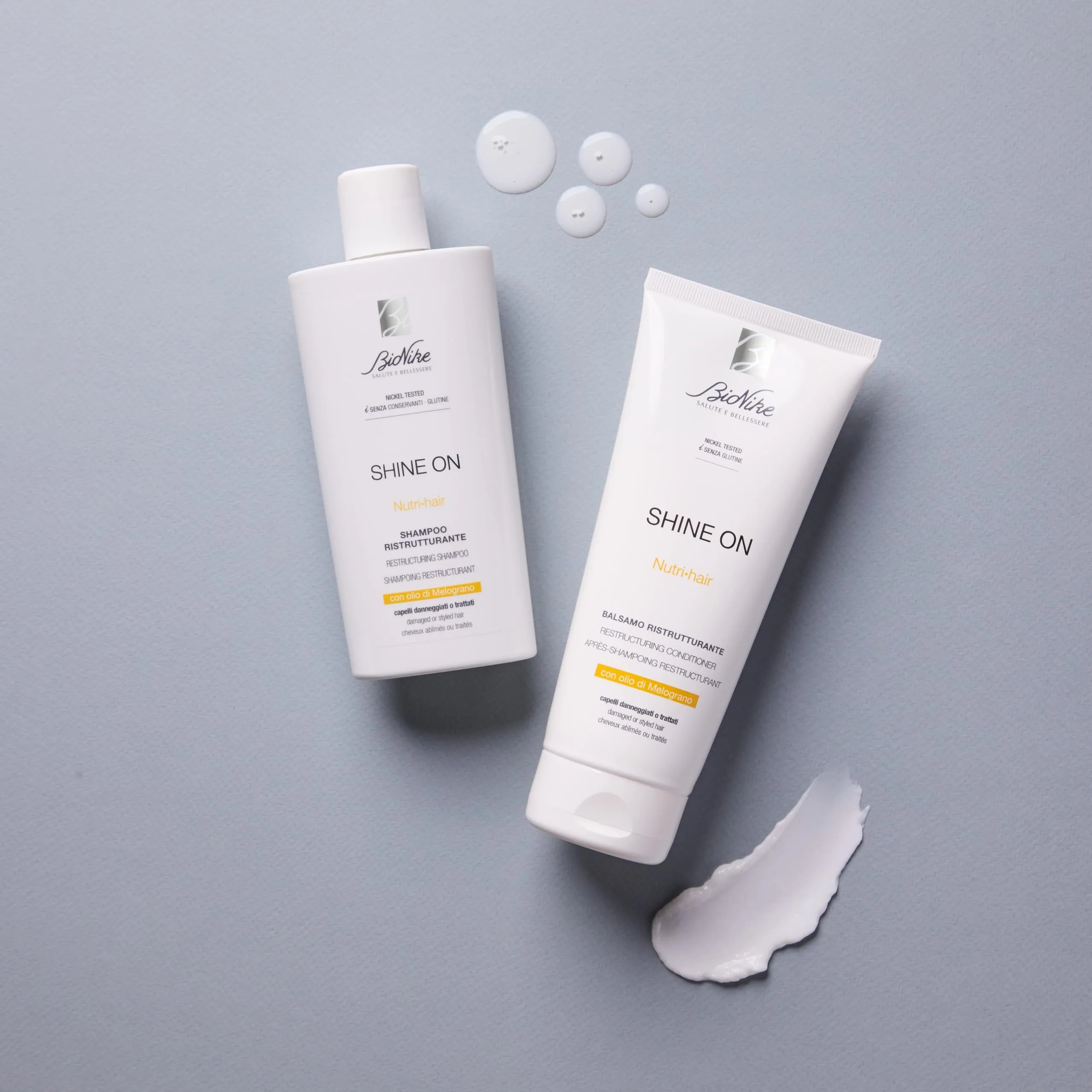 Creamy, rinse-out formula, ideal for repairing the damage of dry and/or damaged hair. Enriched with pomegranate oil, fruit extracts, and special ultra-light silicones, it hydrates and nourishes the hair shaft, coating it from root to tip with an invisible film that recompacts the cuticle scales. It detangles hair and makes it easier to comb, leaving it soft, shiny, and light. Directions: After shampooing, distribute a small amount of product evenly through damp hair, leave on for 1 minute, then rinse thoroughly.