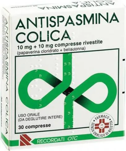 Antispasmina Colica tablets should be swallowed before meals or when needed and should be swallowed whole because they must reach the intestine intact, where they exert their action at the level of the spasm. In case of diarrhea or intestinal hypermotility, the tablets can, exceptionally, be expelled whole; in this case it is advisable, at least for a few days, to take the tablets after breaking them into pieces.