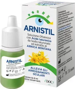 Arnistil is an ophthalmic solution with hyaluronic acid from sodium hyaluronate and arnica montana extract. Relieves eye redness.
