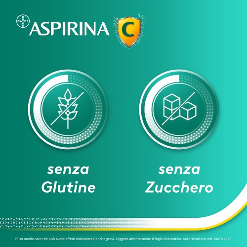 Hypersensitivity reactions Acetylsalicylic acid and other NSAIDs can cause hypersensitivity reactions (including asthma attacks, rhinitis, angioedema or urticaria). The risk is higher in subjects who have already shown a hypersensitivity reaction after using this type of drug in the past (see section 4.3) and in subjects who have allergic reactions to other substances (e.g. skin reactions, pruritus, urticaria). In subjects with asthma and/or rhinitis (with or without nasal polyps) and/or urticaria, reactions may be more frequent and severe. In rare cases, reactions can be very serious and potentially fatal. In the following cases, administration of the drug requires a doctor's prescription after careful evaluation of the risk/benefit ratio: - Subjects at increased risk of hypersensitivity reactions (see above) - Subjects at increased risk of gastrointestinal lesions Acetylsalicylic acid and other NSAIDs can cause serious gastrointestinal side effects (bleeding, ulcer, perforation). For this reason, these drugs should not be used by subjects suffering from gastrointestinal ulcer or gastrointestinal bleeding. It is also prudent for those who have suffered from gastrointestinal ulcer or gastrointestinal bleeding in the past to avoid their use. The risk of gastrointestinal lesions is a dose-related effect, as gastrointestinal lesions are greater in subjects who use higher doses of acetylsalicylic acid. Subjects who are used to consuming large quantities of alcohol are also more exposed to the risk of gastrointestinal lesions (bleeding in particular) (see section 4.5). - Subjects with coagulation defects or undergoing treatment with anticoagulants In subjects with coagulation defects or undergoing treatment with anticoagulants, acetylsalicylic acid and other NSAIDs can cause a serious reduction in haemostatic capacity, exposing them to the risk of haemorrhage. – Subjects with impaired renal, cardiac or hepatic function. Acetylsalicylic acid and other NSAIDs can cause a critical reduction in renal function and fluid retention; the risk is greater in subjects undergoing treatment with diuretics. This can be particularly dangerous for the elderly and for subjects with impaired renal, cardiac or hepatic function. – Subjects with asthma. Acetylsalicylic acid and other NSAIDs can cause worsening of asthma. – Geriatric age (especially over 75 years of age). The risk of serious side effects is greater in geriatric subjects. Patients over 70 years of age, especially those on concomitant medications, should use aspirin only after consulting a doctor. Aspirin should not be used in the pediatric population (see section 4.3). Products containing acetylsalicylic acid should not be used in children and adolescents under 16 years of age with viral infections, regardless of whether fever is present or not. In certain viral infections, especially influenza A, influenza B, and chickenpox, there is a risk of Reye's syndrome, a very rare but life-threatening disease that requires immediate medical attention. The risk may be increased if acetylsalicylic acid is taken concomitantly, although a causal relationship has not been demonstrated. Persistent vomiting in patients with these diseases may be a sign of Reye's syndrome. - Subjects with hyperuricemia/gout: Acetylsalicylic acid may increase the risk of Reye's syndrome. interfere with the elimination of uric acid: high doses have a uricosuric effect while (very) low doses can reduce its excretion. It should also be considered that acetylsalicylic acid and other NSAIDs can mask the symptoms of gout, delaying its diagnosis. An antagonistic effect with uricosuric drugs is also possible (see section 4.5). - Subjects with a predisposition to calcium-oxal nephrolithiasis (kidney stones) or with recurrent nephrolithiasis. Aspirin effervescent tablets with vitamin C: vitamin C (ascorbic acid) should be used with caution in subjects with a predisposition to calcium-oxal nephrolithiasis (kidney stones) or with recurrent nephrolithiasis. - Combination of drugs not recommended or requiring special precautions or dosage adjustment. The use of acetylsalicylic acid in combination with certain drugs may increase the risk of gout. increase the risk of serious side effects (see section 4.5). Do not use acetylsalicylic acid together with another NSAID or, in any case, do not use more than one NSAID at a time. Fertility The use of acetylsalicylic acid, as with any drug that inhibits the synthesis of prostaglandins and cyclooxygenase, may interfere with fertility. Female subjects, particularly women who have fertility problems or who are undergoing fertility investigations, must be informed of this (see section 4.6). Sodium Aspirin effervescent tablets with Vitamin C contain 933 mg of sodium per tablet: it may not be suitable for subjects on a low-sodium diet. If you are undergoing surgery (even minor, for example tooth extraction) and have used acetylsalicylic acid or another NSAID in the previous few days, you must inform your surgeon due to the possible effects on coagulation. Since acetylsalicylic acid can cause gastrointestinal bleeding, this should be taken into account if occult blood testing is necessary. Before administering any medication, all necessary precautions must be taken to prevent adverse reactions. It is particularly important to rule out previous hypersensitivity reactions to this or other medications and to rule out other contraindications or conditions that may expose you to the risk of potentially serious adverse effects listed above. If in doubt, consult your doctor or pharmacist. Imperfect or prolonged storage of Aspirin C may cause changes in the color of the tablet, which in itself does not affect the activity or tolerability of the active ingredient. In this case, it is advisable to ask your pharmacy to replace the pack. The product must be taken on a full stomach.
