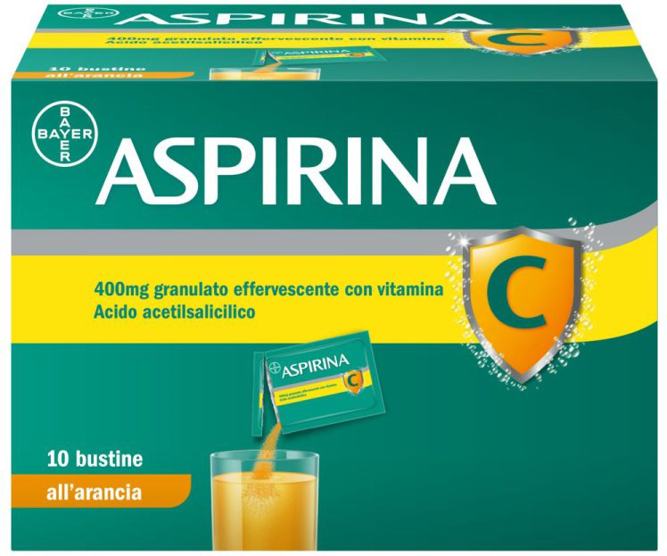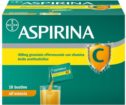 Hypersensitivity reactions Acetylsalicylic acid and other NSAIDs can cause hypersensitivity reactions (including asthma attacks, rhinitis, angioedema or urticaria). The risk is greater in subjects who have already shown a hypersensitivity reaction in the past after using this type of medicine (see section 4.3) and in subjects who have allergic reactions to other substances (e.g. skin reactions, itching, urticaria). In subjects with asthma and/or rhinitis (with or without nasal polyps) and/or urticaria, reactions may be more frequent and severe. In rare cases, reactions can be very serious and potentially fatal. In the following cases, administration of the drug requires a doctor's prescription after careful evaluation of the risk/benefit ratio: - Subjects at increased risk of hypersensitivity reactions (see above) - Subjects at increased risk of gastrointestinal lesions. Acetylsalicylic acid and other NSAIDs can cause serious gastrointestinal side effects (bleeding, ulceration, perforation). For this reason, these drugs should not be used by subjects suffering from gastrointestinal ulceration or gastrointestinal bleeding. It is also prudent for those who have suffered from gastrointestinal ulceration or gastrointestinal bleeding in the past to avoid their use. The risk of gastrointestinal lesions is a dose-related effect, as gastrointestinal damage is greater in subjects who use higher doses of acetylsalicylic acid. Even subjects who are used to consuming large quantities of alcohol are at increased risk of gastrointestinal lesions (bleeding in particular) (see section 4.5). - Subjects with coagulation defects or treated with anticoagulants In subjects with coagulation defects or treated with anticoagulants, acetylsalicylic acid and other NSAIDs can cause a serious reduction in haemostatic capacity, exposing them to the risk of haemorrhage. - Subjects with impaired renal, cardiac or hepatic function Acetylsalicylic acid and other NSAIDs can cause a critical reduction in renal function and fluid retention; the risk is greater in subjects treated with diuretics. This can be particularly dangerous for the elderly and for subjects with impaired renal, cardiac or hepatic function. - Subjects with asthma Acetylsalicylic acid and other NSAIDs can cause an aggravation of asthma. - Geriatric age (especially over 75 years of age). The risk of serious adverse reactions is greater in geriatric subjects. Subjects over 70 years of age, especially those taking concomitant medications, should use Aspirin 400 mg effervescent granules only after consulting a doctor. Aspirin 400 mg effervescent granules should not be used in the pediatric population (see section 4.3). Products containing acetylsalicylic acid should not be used in children and adolescents under 16 years of age with viral infections, regardless of whether or not fever is present. In certain viral infections, especially influenza A, influenza B, and chickenpox, there is a risk of Reye's Syndrome, a very rare but life-threatening disease that requires immediate medical attention. The risk may be increased if acetylsalicylic acid is taken concomitantly, although a causal relationship has not been demonstrated. Persistent vomiting in patients with these diseases may be a sign of Reye's syndrome. - Subjects with hyperuricemia/gout: Acetylsalicylic acid may interfere with the elimination of uric acid: high doses have a uricosuric effect, while (very) low doses may reduce its excretion. It should also be considered that acetylsalicylic acid and other NSAIDs may mask the symptoms of gout, delaying its diagnosis. An antagonistic effect with uricosuric drugs is also possible (see section 4.5). - Subjects with a predisposition to calcium-oxal nephrolithiasis (kidney stones) or with recurrent nephrolithiasis. Vitamin C (ascorbic acid) should be used with caution in patients with a predisposition to calcium-oxal nephrolithiasis (kidney stones) or with recurrent nephrolithiasis. - Combinations of drugs that are not recommended or that require special precautions or dosage adjustment. The use of acetylsalicylic acid in combination with certain drugs may increase the risk of serious side effects (see section 4.5). Do not use acetylsalicylic acid together with another NSAID or, in any case, do not use more than one NSAID at a time. Fertility The use of acetylsalicylic acid, as with any drug that inhibits the synthesis of prostaglandins and cyclooxygenase, may interfere with fertility; female subjects, particularly women who have fertility problems or who are undergoing fertility investigations, should be informed of this (see section 4.6). Sodium This medicine contains 469 mg of sodium per sachet, equivalent to 23% of the WHO recommended maximum daily intake of 2 g of sodium for an adult. Sucrose This medicine contains 5.6 g of sucrose per sachet. To be taken into consideration by people with diabetes mellitus. Patients with rare hereditary problems of fructose intolerance, glucose-galactose malabsorption, or sucrase-isomaltase insufficiency should not take this medicine. Orange yellow colouring (E 110) May cause allergic reactions. If you are undergoing surgery (even minor, such as tooth extraction) and have used acetylsalicylic acid or another NSAID in the previous few days, you must inform your surgeon due to the possible effects on coagulation. Since acetylsalicylic acid can cause gastrointestinal bleeding, this must be taken into account if occult blood testing is necessary. Before administering any medicine, all necessary precautions must be taken to prevent adverse reactions; particularly important is the exclusion of previous hypersensitivity reactions to this or other medicines and the exclusion of other contraindications or conditions that may expose you to the risk of potentially serious adverse effects listed above. If in doubt, consult your doctor or pharmacist. The product must be taken on a full stomach.