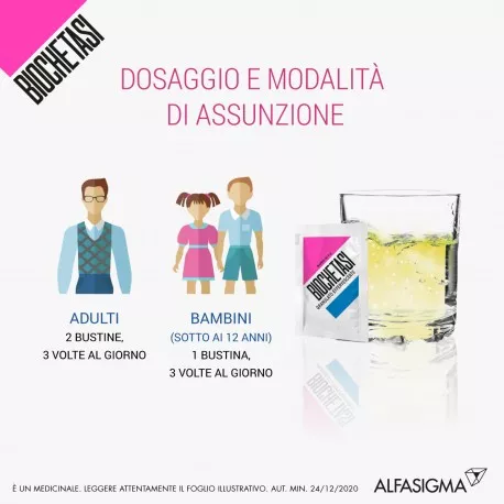 Biochetasi effervescent granules contain 125 mg of sorbitol and 650 mg of fructose. Sorbitol is a source of fructose. If your doctor has told you that you (or your child) are intolerant to some sugars, or if you have been diagnosed with hereditary fructose intolerance, a rare genetic disease in which patients cannot break down fructose, talk to your doctor before you (or your child) take this medicine.