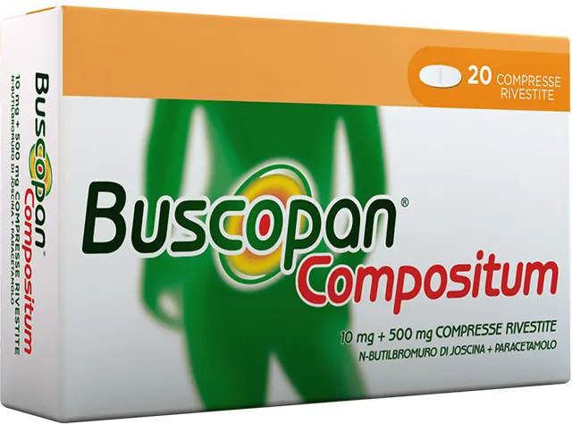 Administer with caution in subjects with renal or hepatic insufficiency. In these conditions, Buscopan compositum should be administered only under medical supervision, if necessary, reducing the dose or prolonging the interval between individual administrations. Blood counts and renal and hepatic function should be monitored after prolonged use. The extensive use of analgesics, especially at high doses, can induce headache which should not be treated with increased doses of the medicine. Severe acute hypersensitivity reactions (e.g., anaphylactic shock) are observed very rarely. Treatment should be discontinued at the first signs of a hypersensitivity reaction following administration of Buscopan compositum. Abrupt discontinuation of analgesics after prolonged use at high doses may cause withdrawal symptoms (e.g., headache, fatigue, nervousness), which usually resolve within a few days. Resumption of analgesics should be subject to medical advice and resolution of withdrawal symptoms. Due to the potential risk of anticholinergic complications, it should be used with caution in patients predisposed to narrow-angle glaucoma, in patients subject to intestinal or urinary tract obstruction, and in those prone to tachyarrhythmia with central autonomic nervous system disorders, in tachyarrhythmias, in arterial hypertension, in congestive heart failure, and in hyperthyroidism. All antimuscarinics reduce the volume of bronchial secretions; Therefore, they should be used with caution in patients with chronic obstructive inflammatory diseases of the respiratory system. During treatment with paracetamol, before taking any other medication, check that it does not contain the same active ingredient, since serious adverse reactions may occur if paracetamol is taken in high doses. Instruct the patient to contact their doctor before combining any other medication. Buscopan compositum 10 mg + 500 mg tablets contain 4.32 mg of sodium per tablet. To be taken into consideration by patients on a controlled sodium diet.