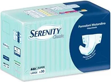 Serenity Classic Pull-Up Diapers are an optimal solution to incontinence problems, particularly suitable for bedridden people. Thanks to their high absorption performance, they offer protection and always dry skin; also suitable for double incontinence and for long periods of the day. The anatomical shape, the soft elastic bands around the thighs and the practical repositionable adhesives offer great protection against any type of leakage, always offering high comfort. Available in several sizes, they are suitable for moderate to very severe incontinence.