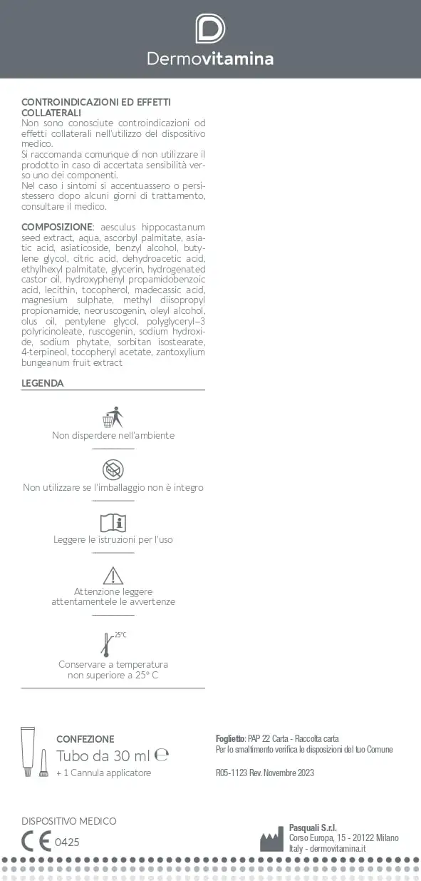 Aesculus Hippocastanum Seed Extract, Aqua, Ascorbyl Palmitate, Asiatic Acid, Asiaticoside, Benzyl Alcohol, Butylene Glycol, Citric Acid, Dehydroacetic Acid, Ethylhexyl Palmitate, Glycerin, Hydrogenated Castor Oil, Hydroxyphenyl Propamidobenzoic Acid, Lecithin, Tocopherol, Madecassic Acid, Magnesium Sulfate, Methyl Diisopropyl Propionamide, Neoruscogenin, Oleyl Alcohol, Oleic Acid, Pentylene Glycol, Polyglyceryl-3 Polyricinoleate, Ruscogenin, Sodium Hydroxide, Sodium Phytate, Sorbitan Isostearate, 4-Terpineol, Tocopheryl Acetate, Zantoxylium Alatum Extract.