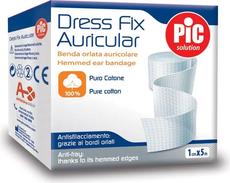 Dress Fix Auricular is a hemmed bandage specially designed for your ear. The fray-resistant edges and double weft thread make it resistant.