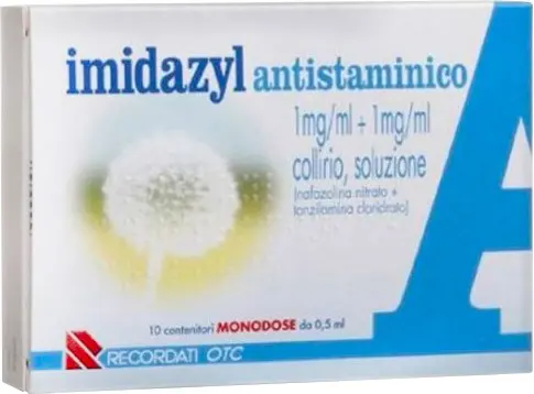 The product, although systemically absorbed, should be used with caution in patients with hypertension, hyperthyroidism, heart disease, and hyperglycemia (diabetes). If symptoms persist or worsen after a short period of treatment, advise the patient to consult a doctor. In any case, the product should not be used for more than 4 consecutive days, unless otherwise prescribed by a doctor, given the possibility that adverse effects may otherwise occur. Those who are hypersensitive to the preservative should use the IMIDAZYL Antihistamine 1 mg/ml + 1 mg/ml eye drops solution, a single-dose container that does not contain preservatives. Use, especially if prolonged, of topical products may cause sensitization. In this case, it is necessary to interrupt treatment and institute appropriate therapy.