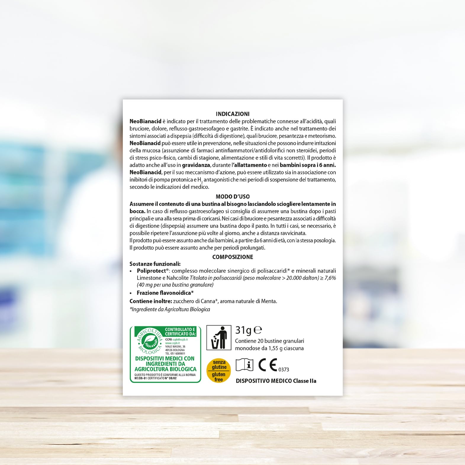 Neo bianacid - supplement for acid reflux 20 single dose sachets 1,55 g