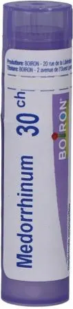 Medorrhinum 30CH is used in chronic cases with or without a history of gonorrhea; in children; in subjects suffering from water retention, edema, tissue sclerosis, growths, warts, condylomas, rheumatic manifestations, burning secretions, chronic infections of the urogenital tract and chronic catarrhal processes of the respiratory tract, rather hasty, restless, anxious and with memory deficits.