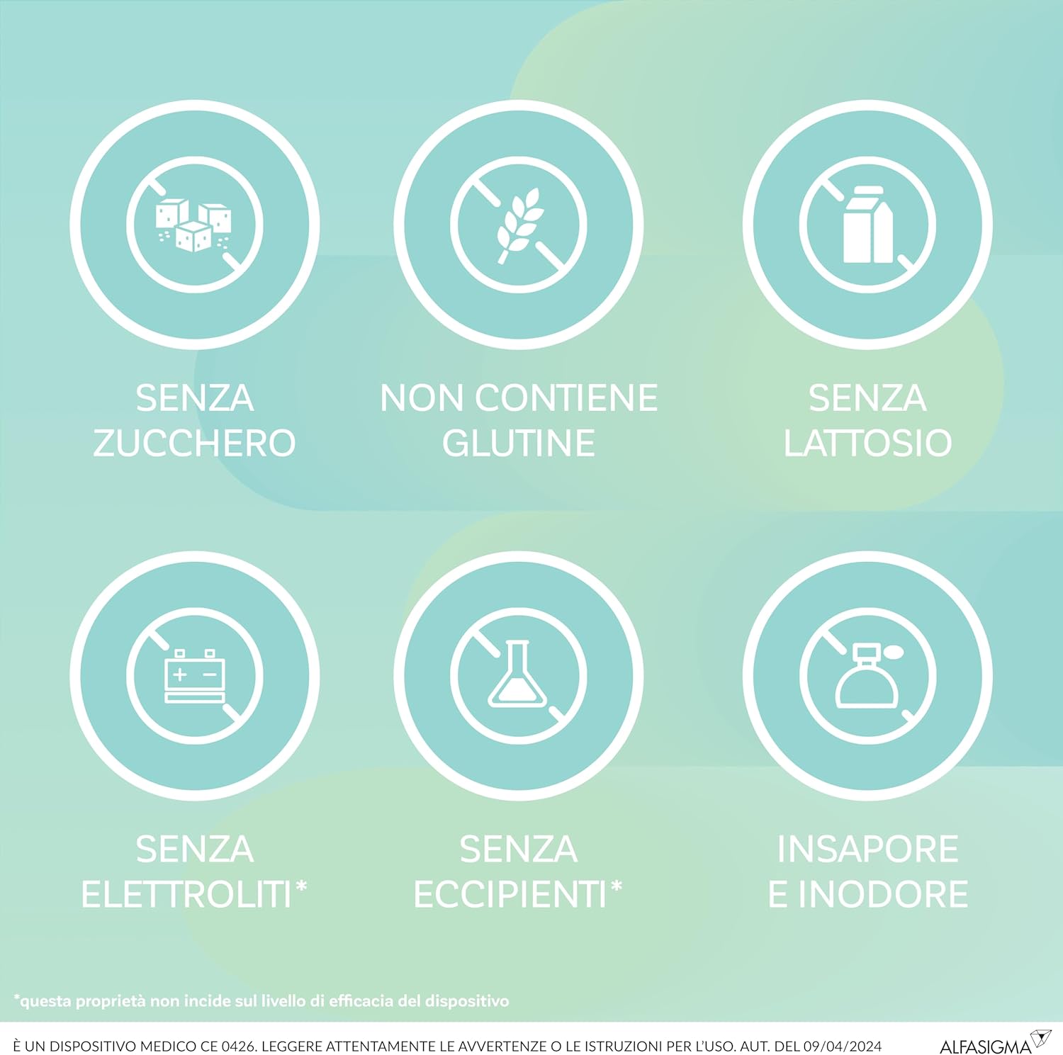Specific medical device to soften stools and promote their elimination. Based on Macrogol 4000 with laxative action, it dissolves in any drink.