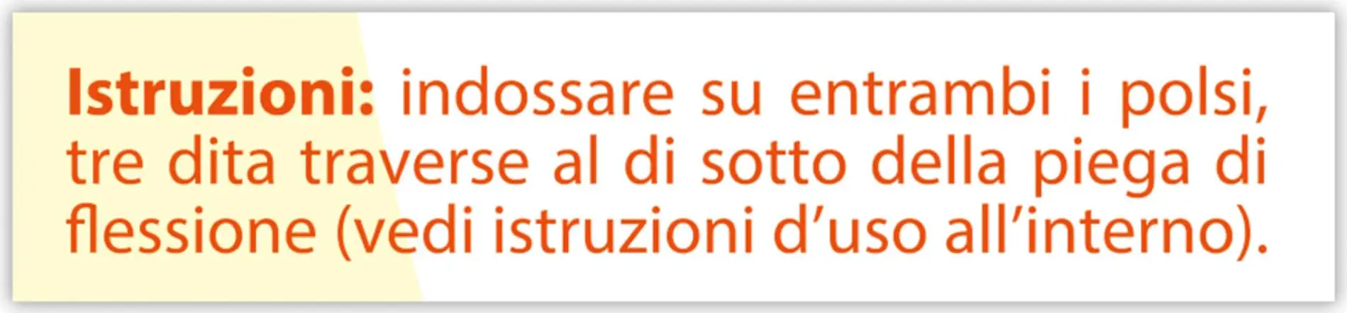 The “dome” button must be correctly positioned on the P6 point, to find which simply place the three fingers of the hand (index, middle, ring finger) on the inside of the wrist, ensuring that the tip of the ring finger is on the first crease of the wrist.