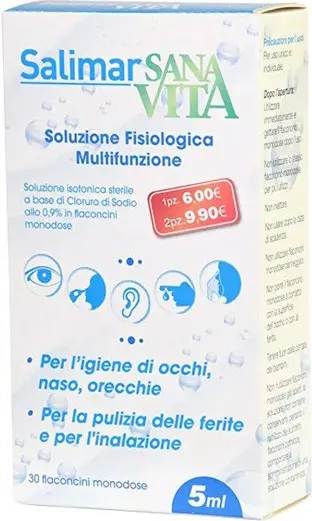 Sanavita SalimarSterile multifunctional physiological solution based on 0.9% sodium chloride in single-dose vials.