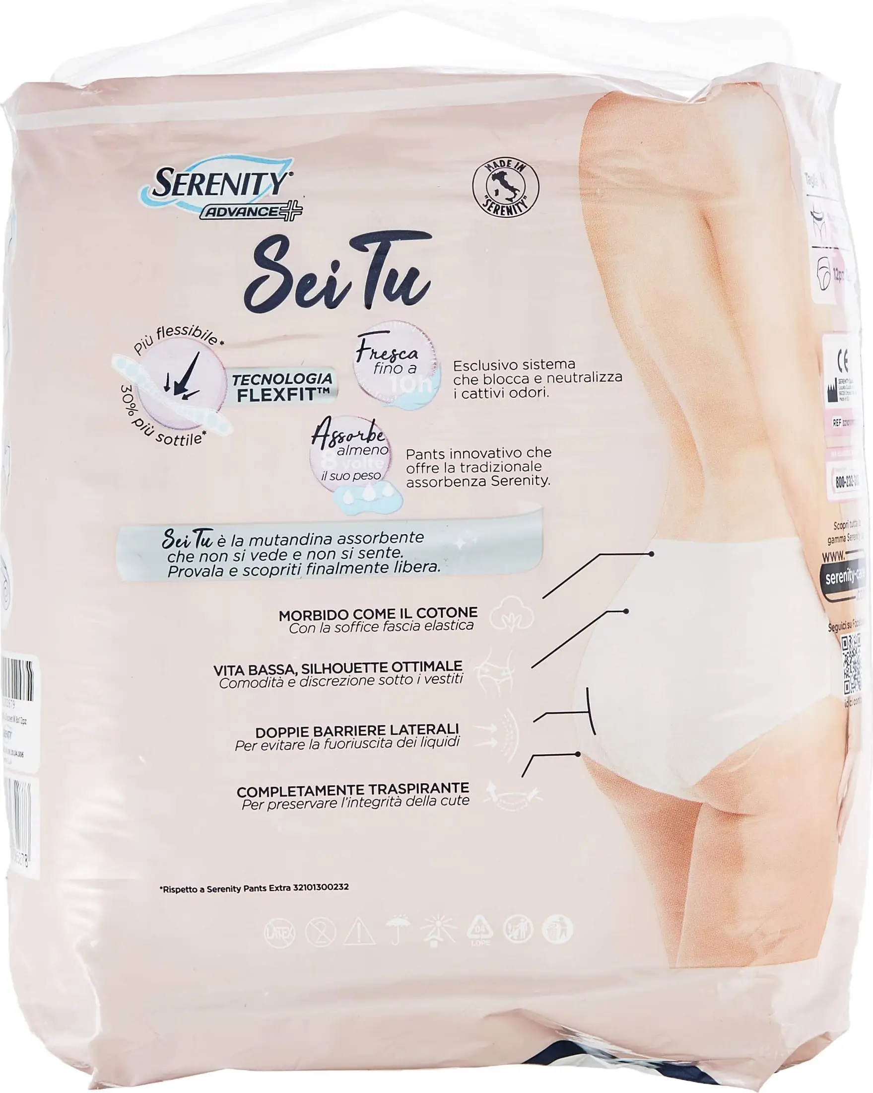 Serenity Sei tu discreet Absorbent panties with a soft low-waisted elastic band and side barriers