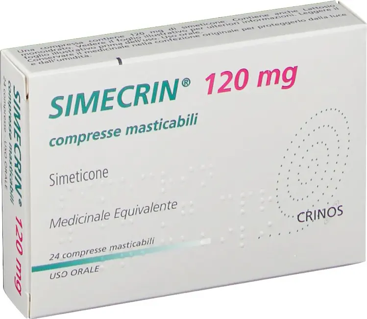 Simecrin 120 mg Chewable Tablets is a medicine used in the treatment of gastrointestinal flatulence and aerophagia in adults.
