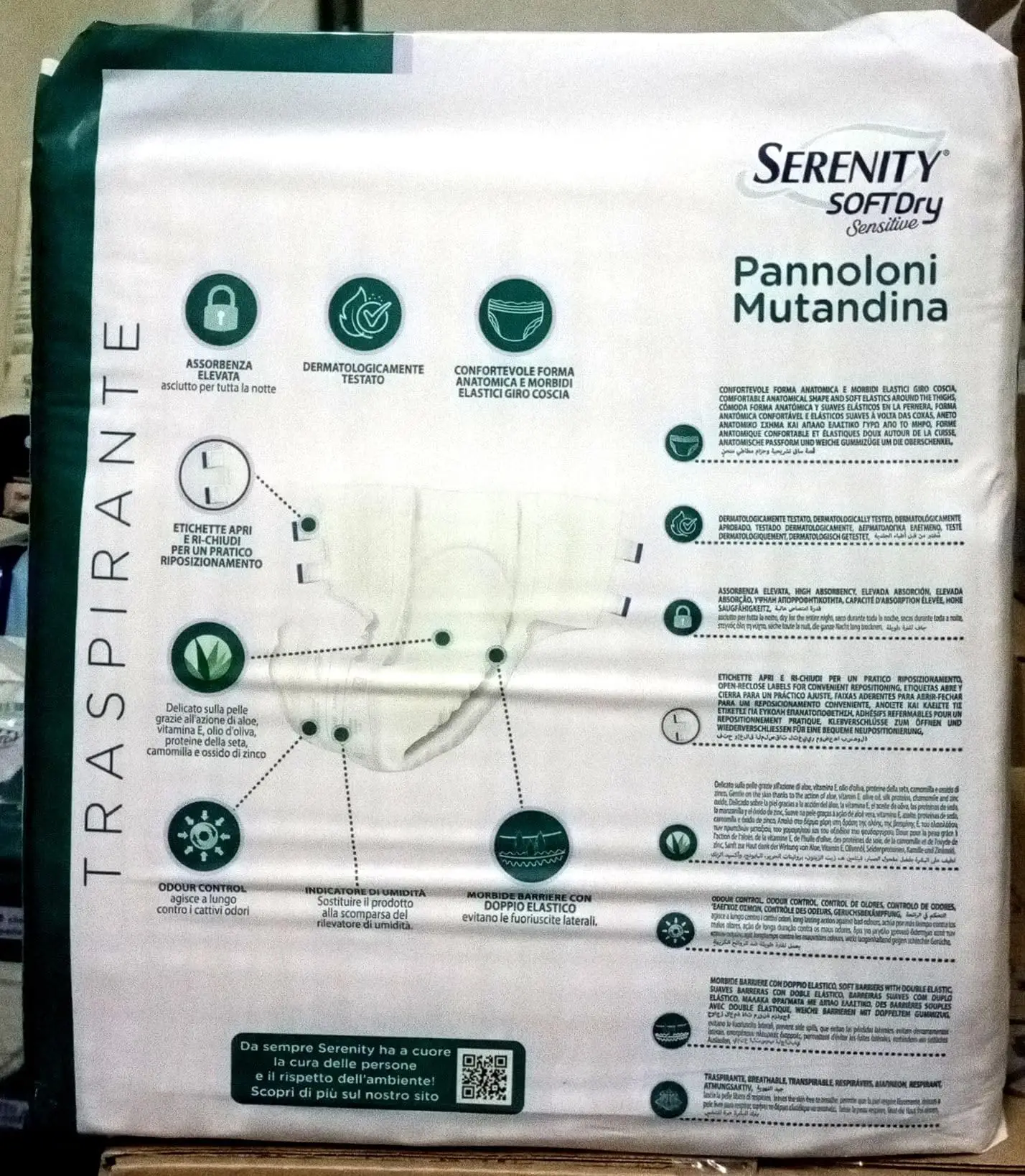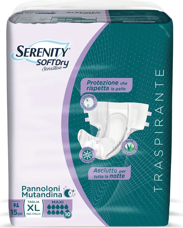 Soft Dry Sensitive with Sensitive Adhesives are the ideal solution for moderate, heavy, or very heavy urinary or fecal incontinence. Serenity Sensitive is completely breathable, with added Aloe Vera and Vitamin E.