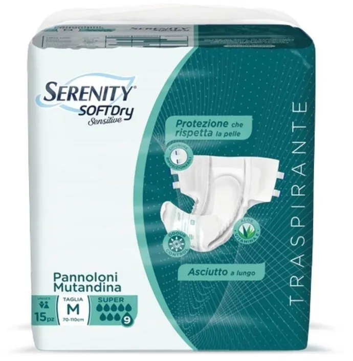 Soft Dry Sensitive with Sensitive Adhesives are the ideal solution for medium, severe, or very severe urinary or fecal incontinence problems. Serenity Sensitive is completely breathable, with the addition of Aloe Vera and Vitamin E.