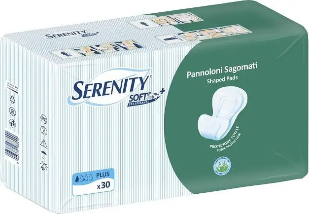 Serenity Soft Dry+ Shaped diaper with Aloe Its features have been designed and created to help the wearer regain protection, discretion and comfort.