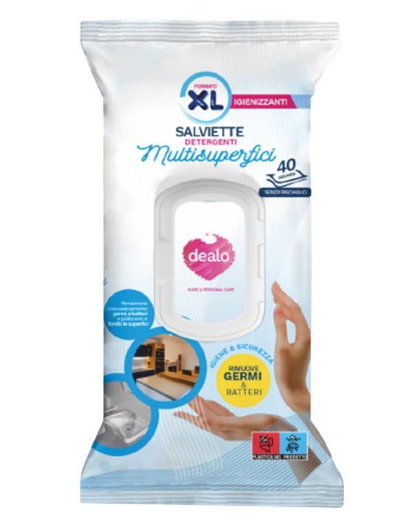 Dealo Multi-Surface Cleaning Wipes have been formulated to ensure impeccable hygiene on every type of surface. Thanks to their deep cleansing action, these wipes not only clean, but also effectively remove germs and bacteria, ensuring fresh and safe environments. Ideal for daily cleaning or for quick interventions, they leave surfaces sparkling and sanitized.