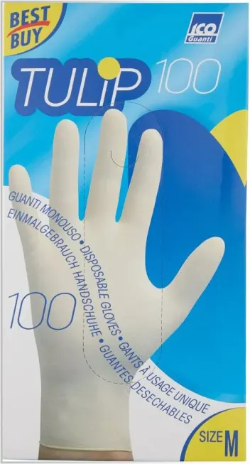 With tear-resistant edge, finely lubricated with biocompatible vegetable powder.