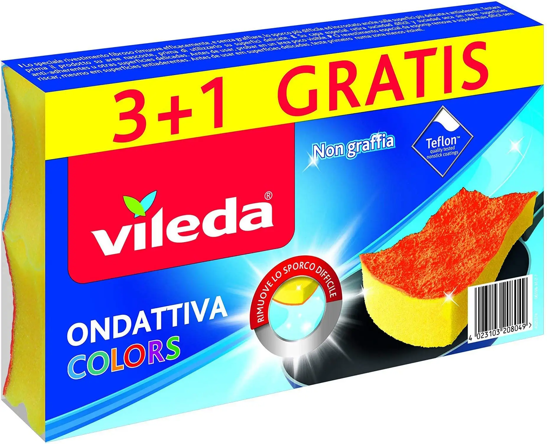 Sponge created with exclusive Ondattiva technology, making it an effective and durable abrasive sponge. It's the perfect choice for both your delicate and resistant kitchen tools, as it will clean all surfaces safely without damaging them even when removing the most stubborn stains and encrustations. The sponges first remove dirt with their abrasive layer quickly and effectively in just a few seconds.