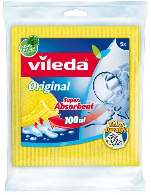 The Vileda Sponge Cloth is made only with natural cotton and cellulose fibers, making it particularly soft, absorbent, and durable. It is therefore suitable for cleaning all washable surfaces such as sinks and tables.