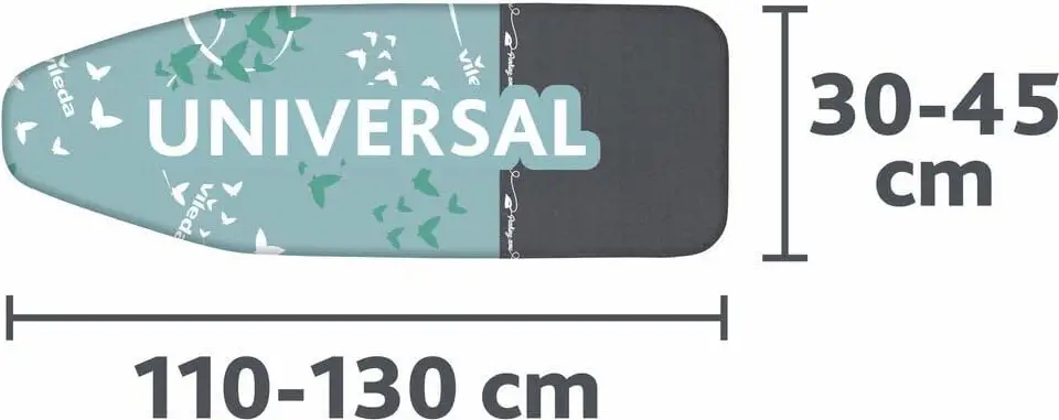 The length of 110 cm to 130 cm and the width of 30 cm to 45 cm guarantee an ideal fit for all ironing boards.