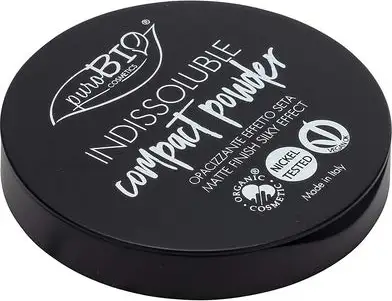 Mattifying silky effect. The INDISSOLUBLE powder by PuroBio Cosmetics mattifies the complexion, thanks to the presence of silica, corn starch, and rice powder. It does not dry the skin because it is enriched with shea butter, apricot oil, avocado oil, and macadamia oil. It contains vitamin E, rich in antioxidants with anti-aging properties. It does not contain talc. Its velvety effect and light color help make the face perfectly even, without imperfections, prolonging the duration of makeup. Its small and handy packaging makes it ready-to-wear and the presence of a mirror inside allows you to touch up your makeup when you are out and about.