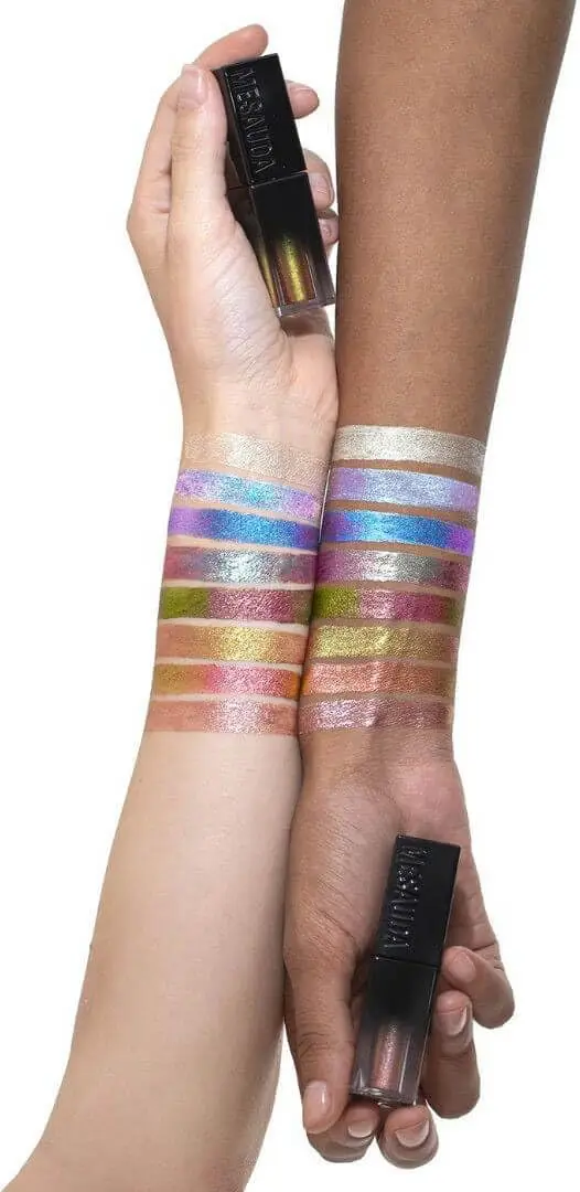 Galactic Shadow by Mesauda is a liquid eyeshadow with a melting texture and an ultra-metallic finish. With a light, long-lasting formula and a glittery finish, its peculiarity is that it is water-based and therefore, once applied, extremely blendable and then adheres perfectly to the eyelid, giving a pleasant refreshing effect. Rich in glitter, the eyeshadow is buildable and designed to adhere perfectly to the eyelid. They can be applied with a brush or fingers and can be used alone or as a base for a more complex makeup look. structured, to be intensified with tone-on-tone powder eyeshadows.