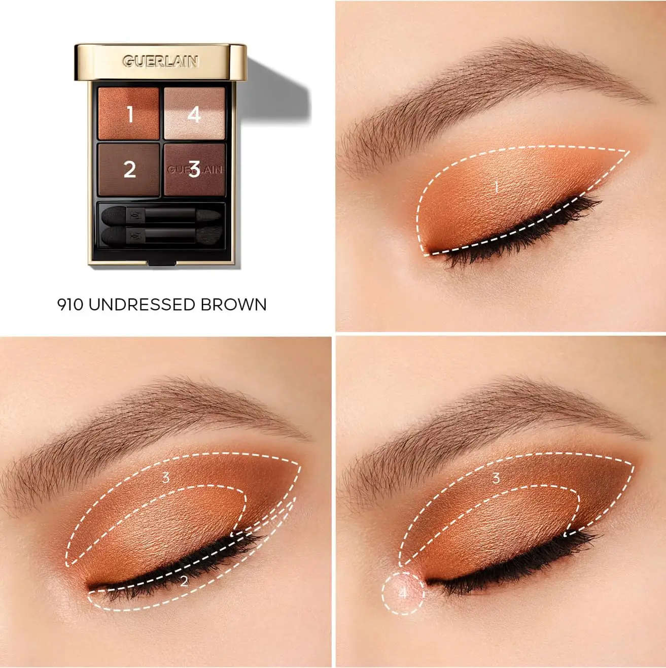 The Ombres G eyeshadow palettes by Guerlain with four shades have an extraordinary texture, made of intense pigments, for long-lasting color with unparalleled depth.