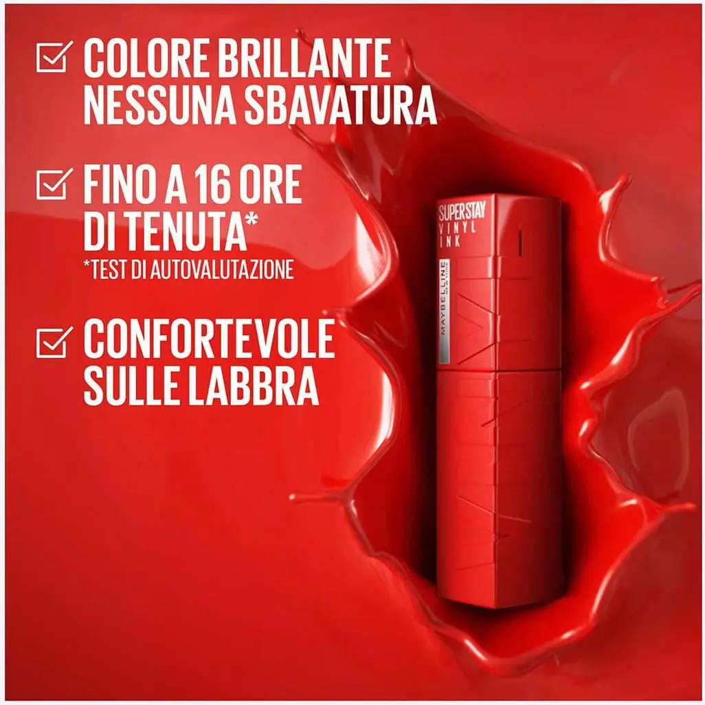 Super Stay Vinyl Ink by Maybelline is a long-lasting liquid lipstick for a smudge-free vinyl look that lasts up to 16 hours. A long-lasting, smudge-proof formula that leaves no traces, giving lips instantly brighter lips.